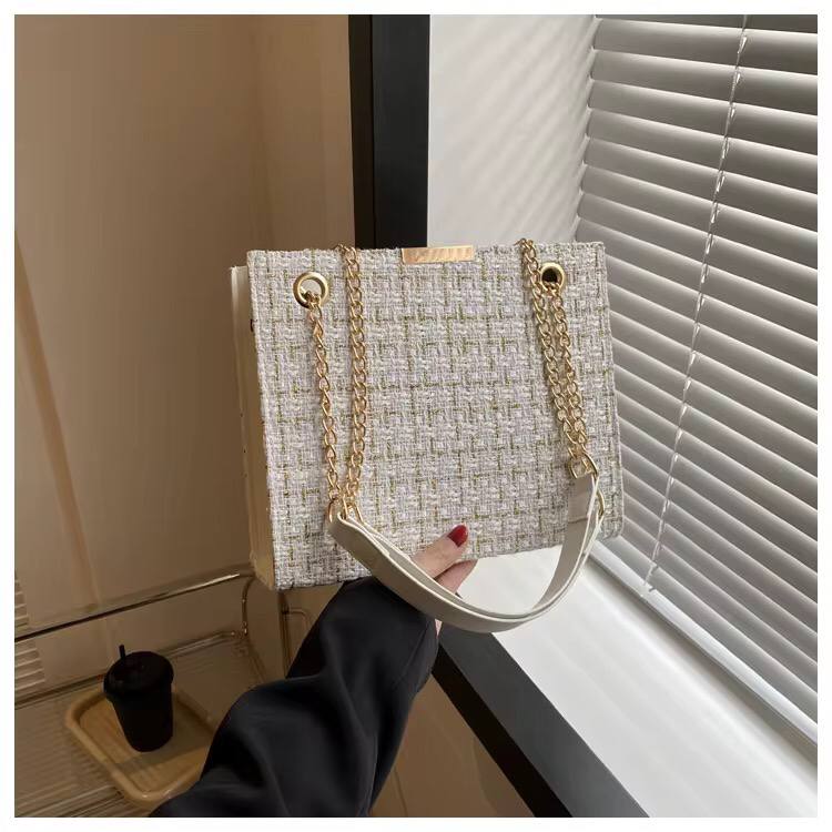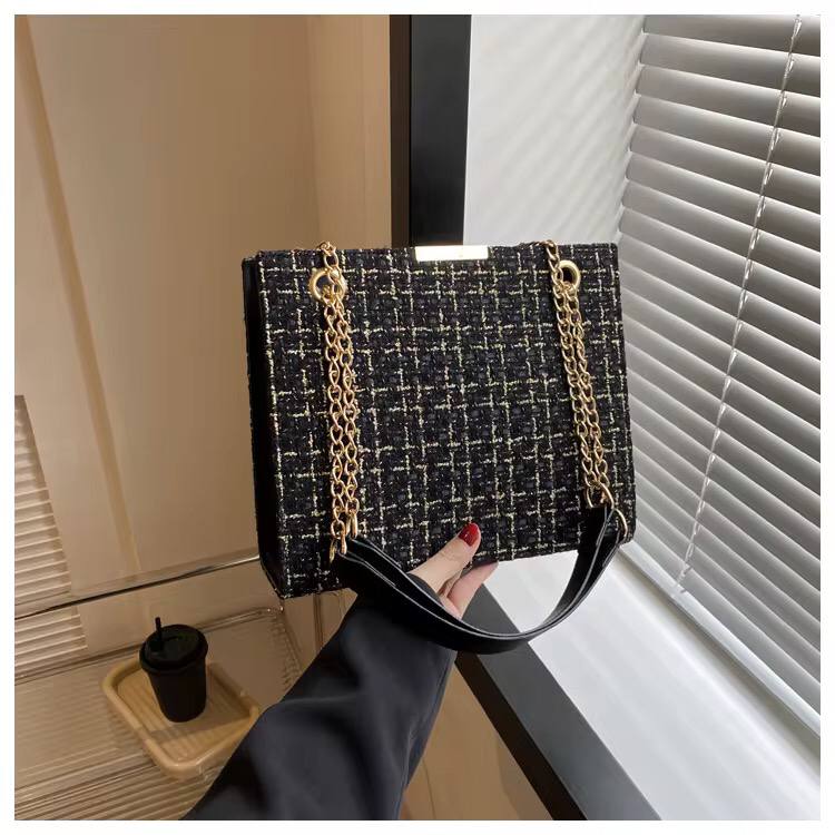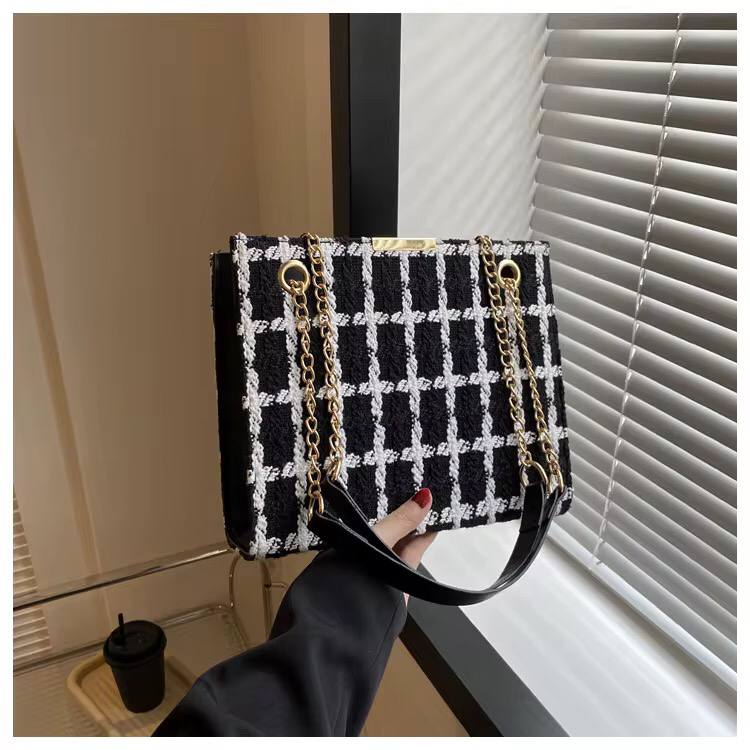 Elevate your look with the Color Block Plaid Chain Crossbody Bag. Stylish and functional with a trendy chain strap, perfect for any occasion. Size: 25×21.5×8.5 cm. Available in designs A, B & C.