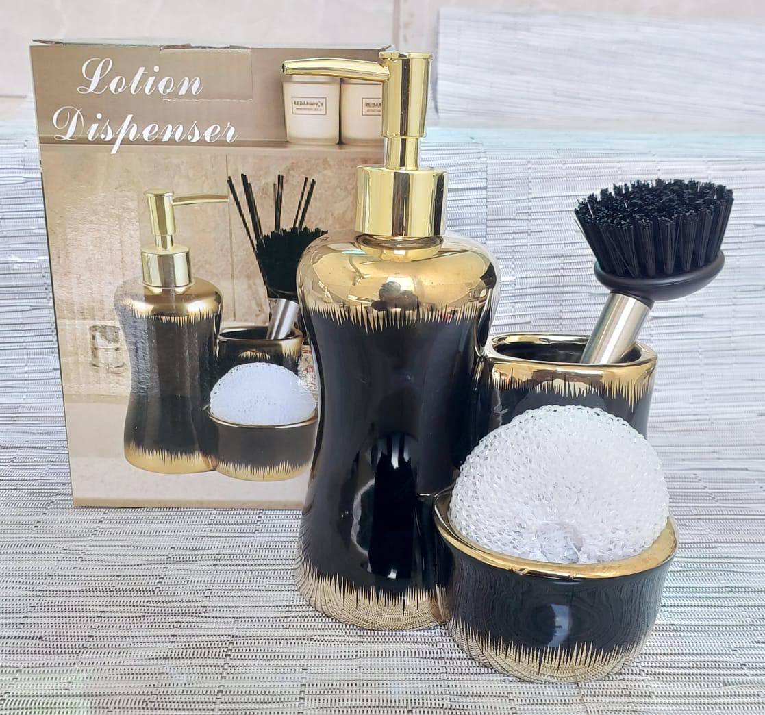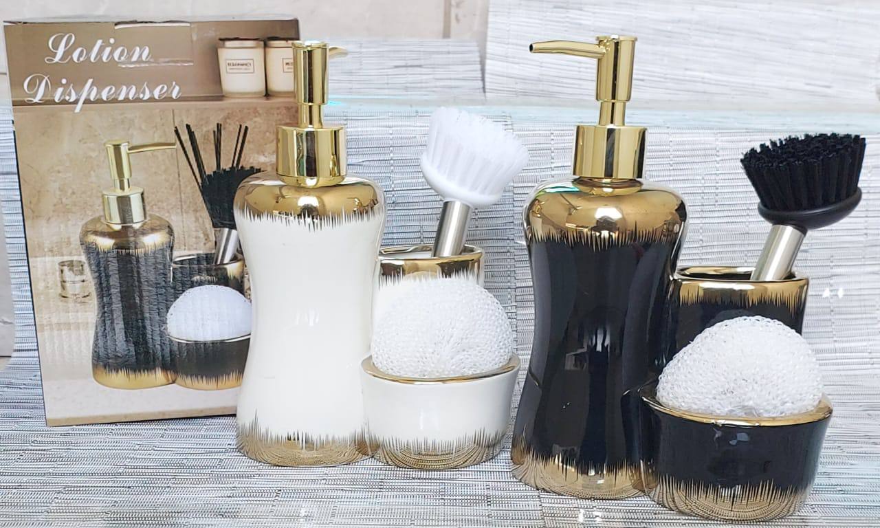 Upgrade your sink area with our 3-level combined ceramic lotion/soap dispenser featuring two convenient slots for a brush and wash pad. Elegant, space-saving, and practical—perfect for organized, stylish kitchen or bathroom use.