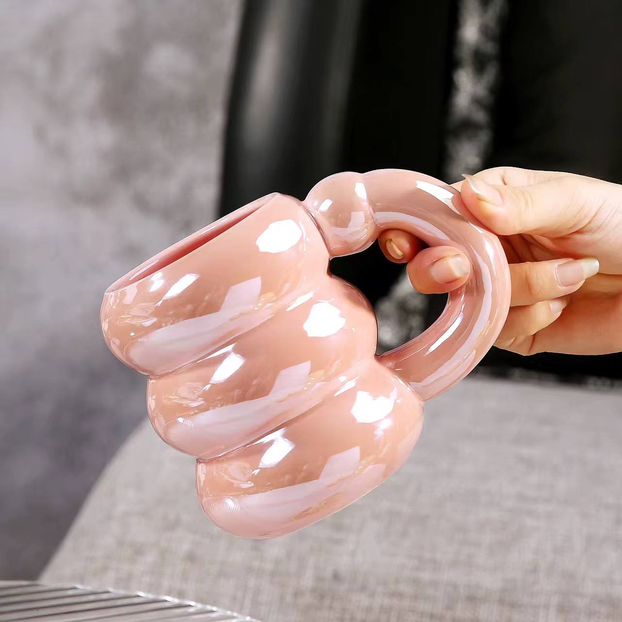 Custom pearl-glaze dazzling mugs, handmade from luxurious porcelain. Available in 1, 2, or 6-piece sets and two elegant color shades. 410ml capacity, perfect for coffee, tea, or gifting with a touch of sophistication