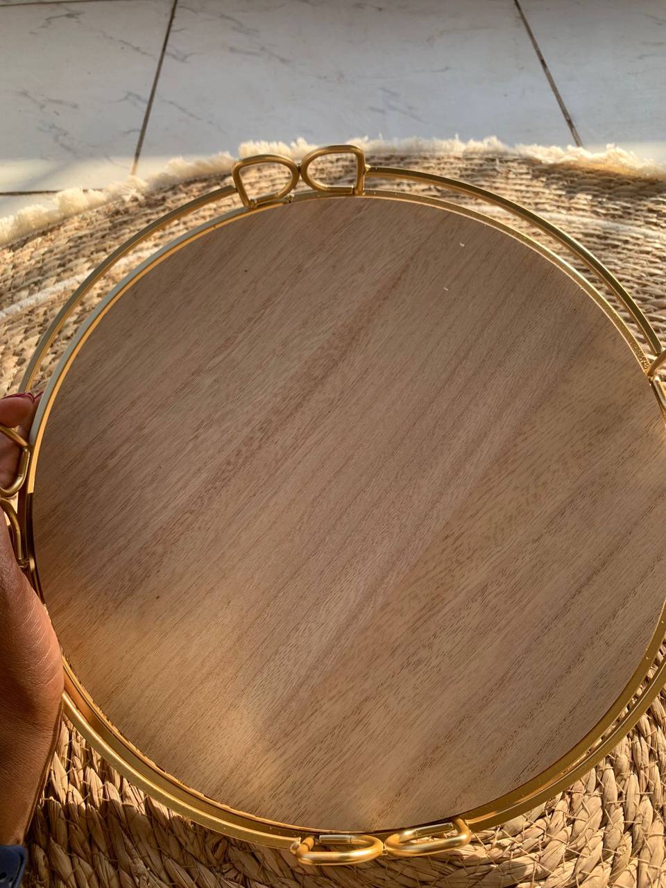 Add elegance to your space with our Decorative Gold Metal and Wood Tray! With a 30cm diameter, it combines luxurious gold metal with natural wood for a sophisticated look. Ideal for serving, organizing, or showcasing decorative items with style.