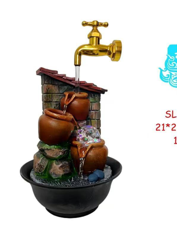 Enhance your space with this decorative tabletop water fountain featuring cascading jars, LED lighting, and a floating tap design. With a built-in pump for continuous flow, it’s perfect for relaxation, home décor, or thoughtful gifting.