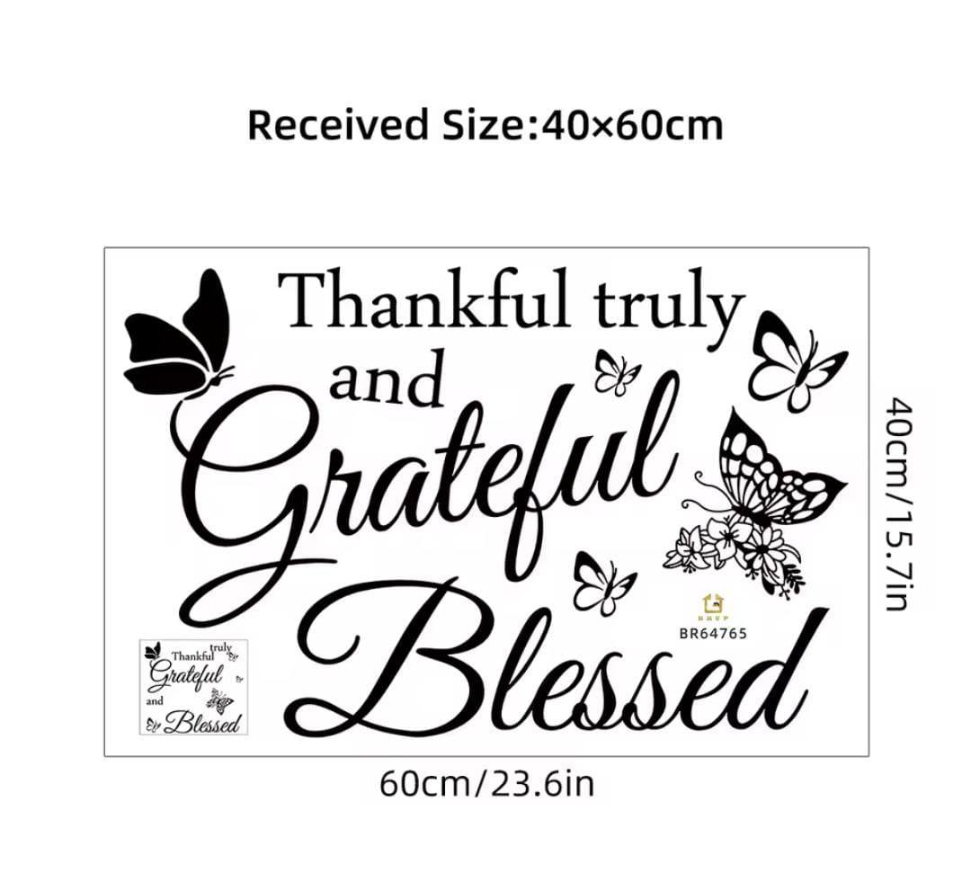 Easy DIY peel-and-stick wall stickers featuring “Thankful. Grateful. Blessed.” Simple to apply and remove, these stylish, inspirational decals instantly enhance any room’s décor, adding a warm, uplifting touch to your home or office walls.