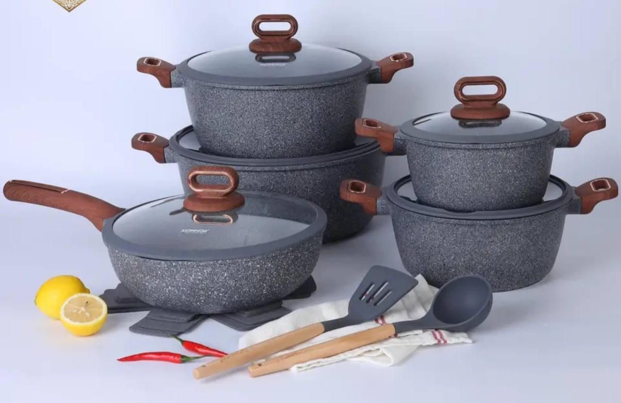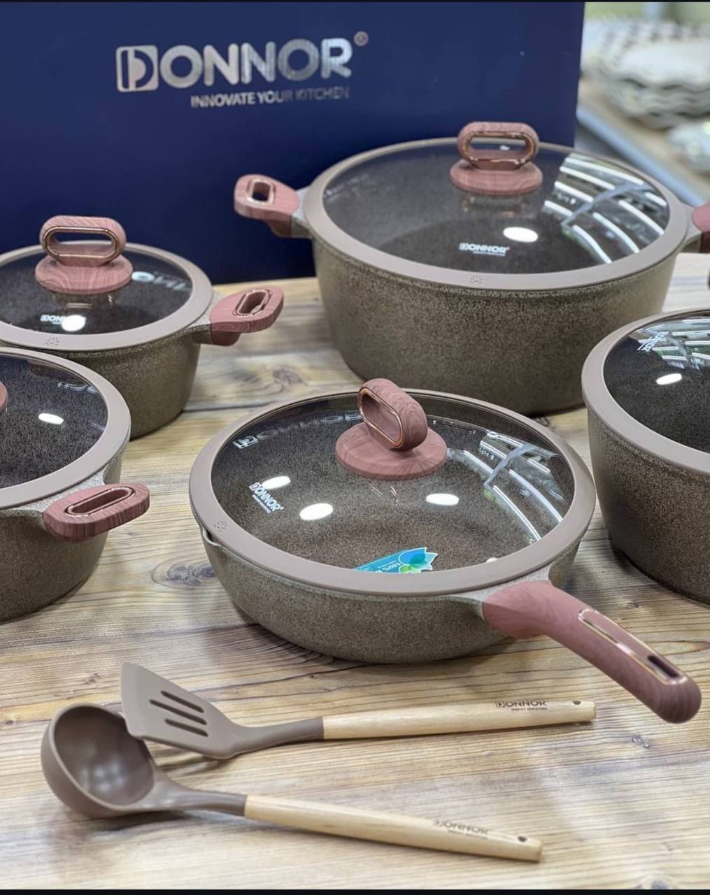 Upgrade your kitchen with the DONNOR 15pcs Cookware Set! Premium quality, PFOA/Lead/Cadmium free non-stick coating ensures safe cooking. Includes casseroles, deep frying pan, silicone spoons, pot protectors, and induction bottom—durable, stylish, and perfect for every home chef!