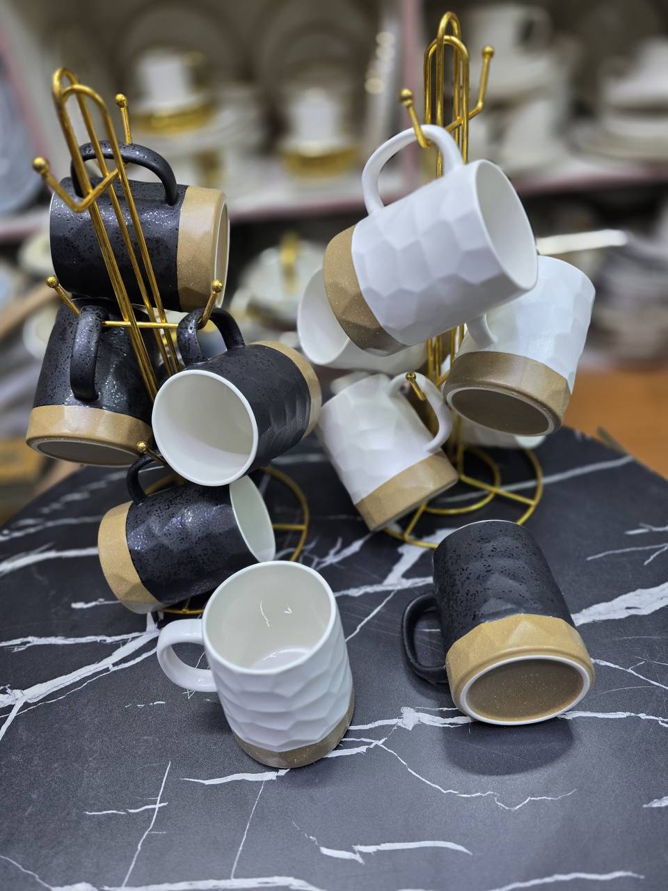 Double wall Nordic vertical stripped Ceramic Coffee Mugs