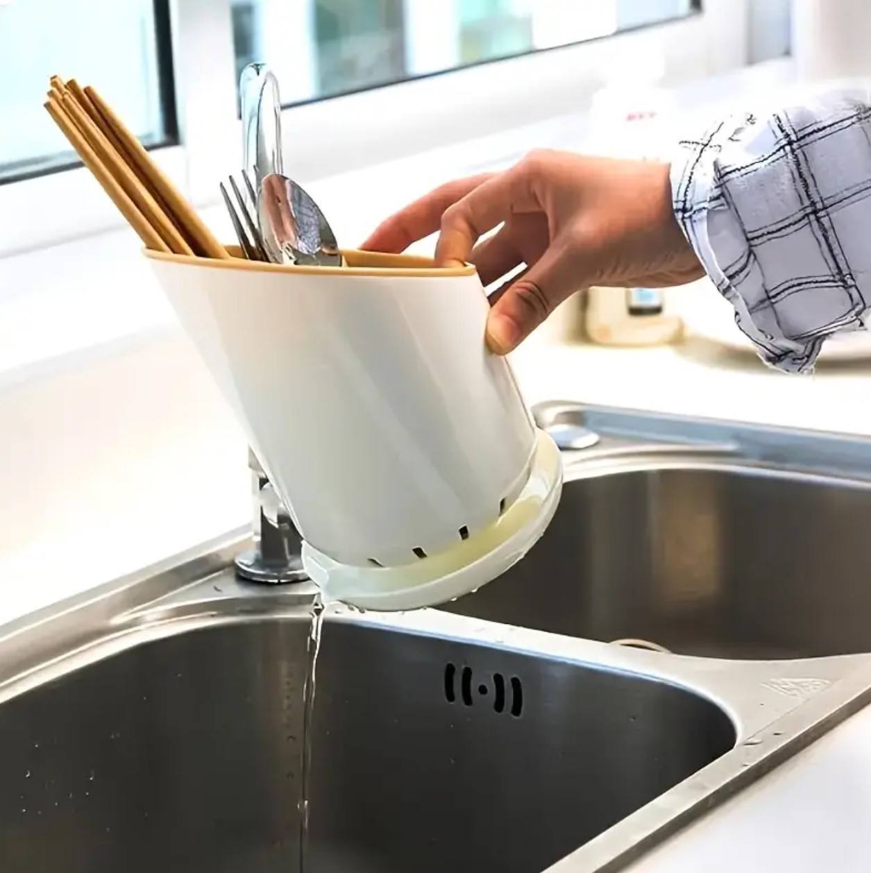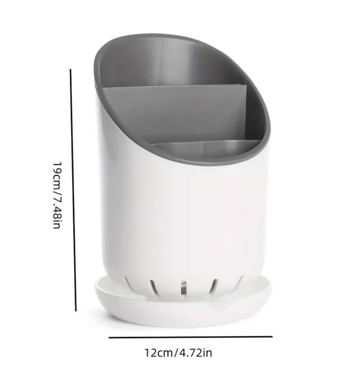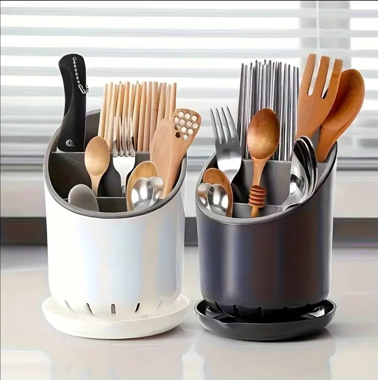 Organize your kitchen effortlessly with this drainer container drying rack. Designed with non-slip features, it’s perfect for storing knives, spoons, and forks. Durable and space-saving, this kitchen organizer ensures dry, clean tableware while adding a touch of style.