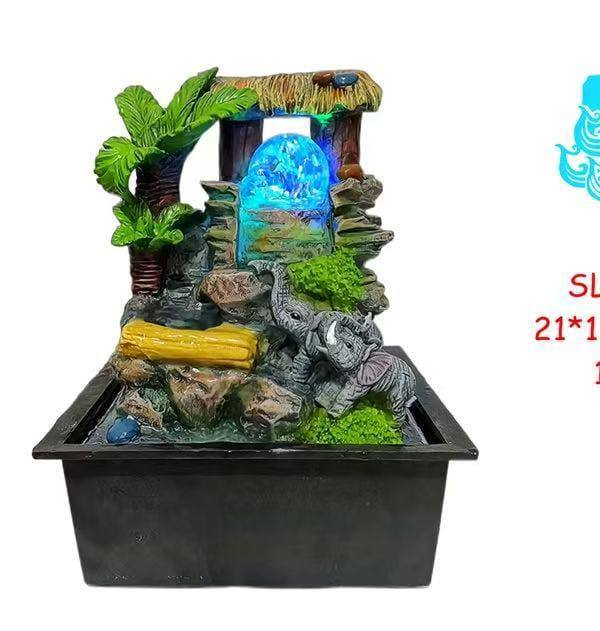 Celebrate love and tranquility with this elephant mother and child rockery tabletop fountain. Crafted from resin, it features a soothing waterfall and color-changing LED light—perfect for home décor, meditation spaces, or meaningful gifting. Size: 29×16×21 cm.