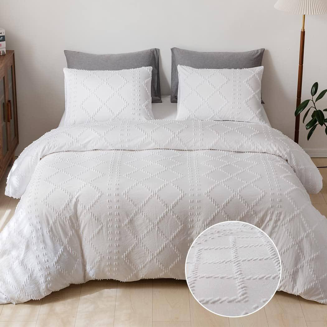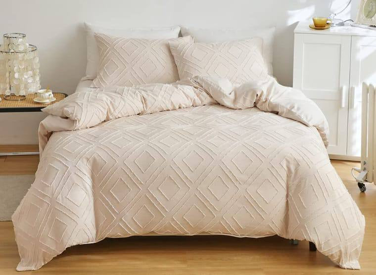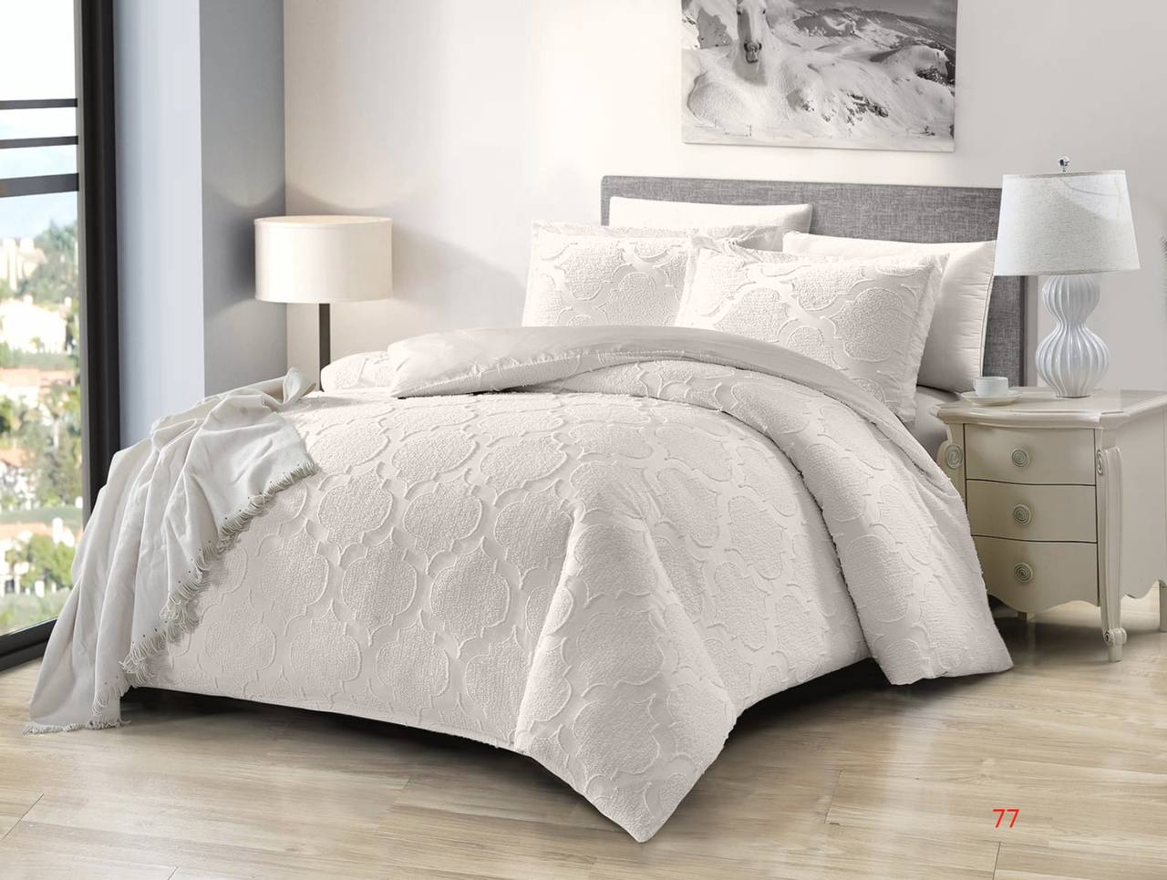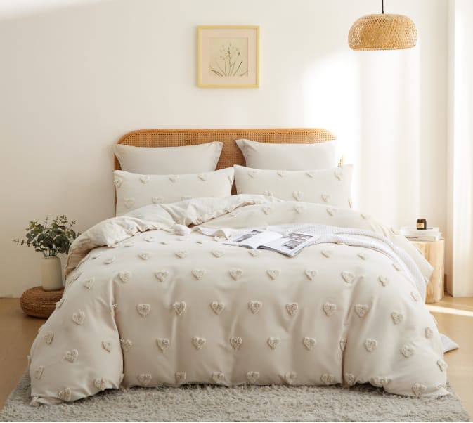 Transform your bedroom with this luxurious embossed flower duvet cover set! Tufted for elegance, the king-size 6x7 set includes 1 duvet cover, 1 bedsheet, and 2 pillowcases. Soft, stylish, and perfect for a cozy, sophisticated sleep experience.