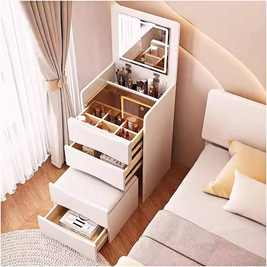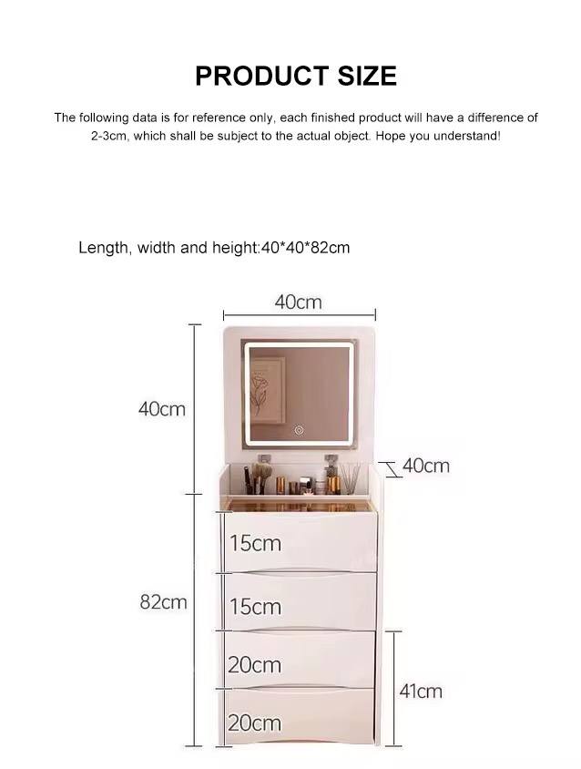 Upgrade your space with this European Luxury Dresser! Crafted from high-quality MDF, it features a unique design, built-in light, and a matching stool. Easy to assemble and available in colors as displayed. Elevate your vanity in style—order now