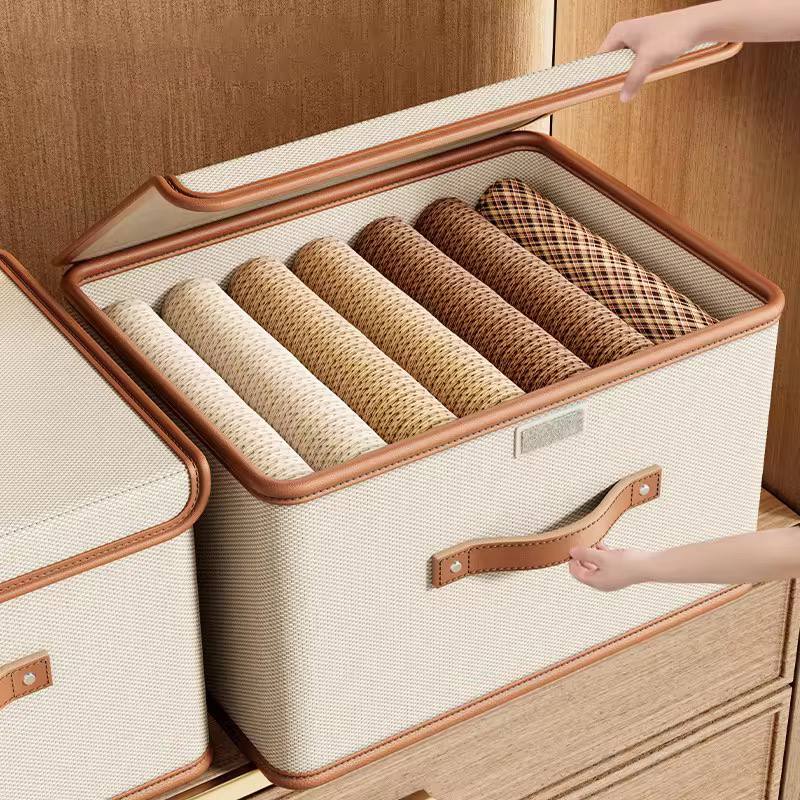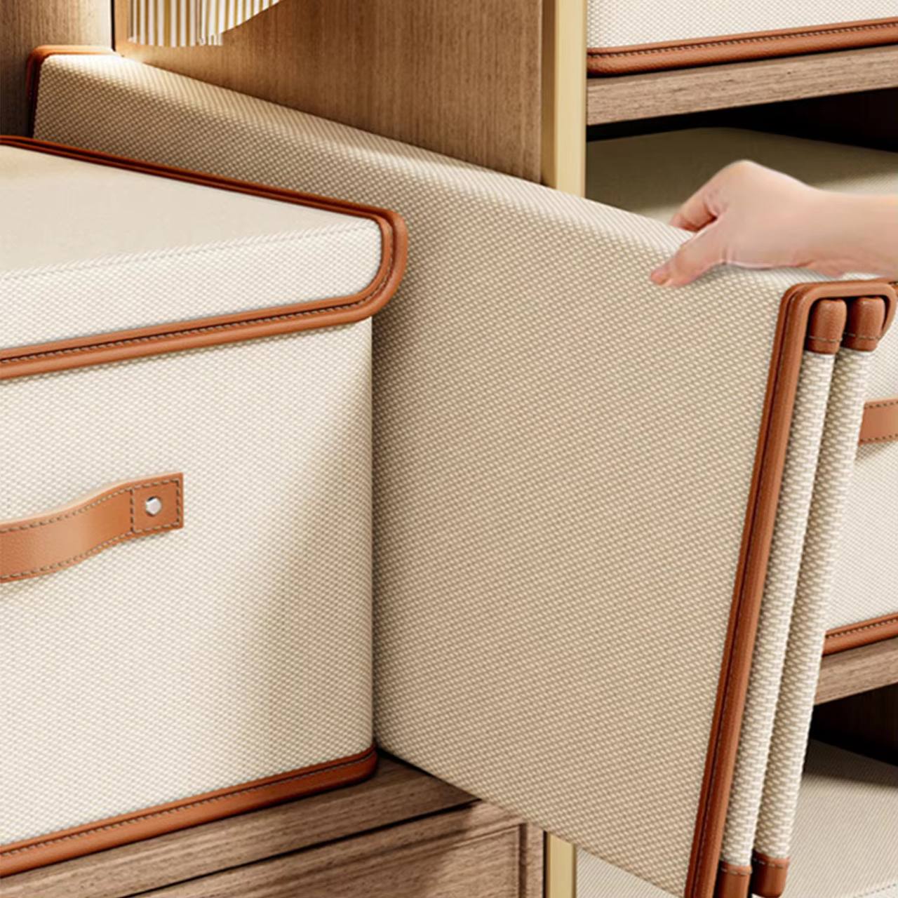 Declutter in style with this extra-large closet organizer. Made from durable PP board and cotton-linen fabric, it's moisture-resistant, washable, and foldable. Reinforced PU leather handles and a lid offer easy, dust-free storage anywhere.