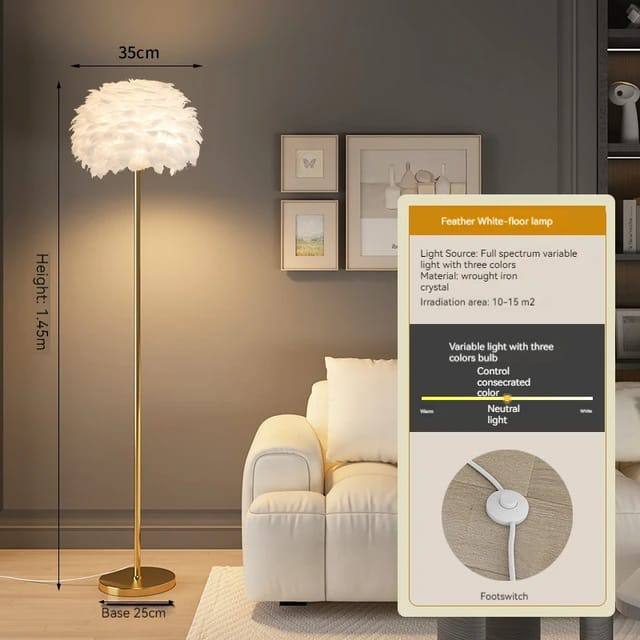 Brighten up your home with our elegant feather floor lamp! Featuring soft, natural feathers, it adds a touch of luxury and warmth to any room. Perfect for living rooms, bedrooms, or offices, this stunning lamp creates a cozy, sophisticated ambiance while providing ambient lighting.
