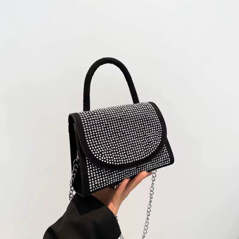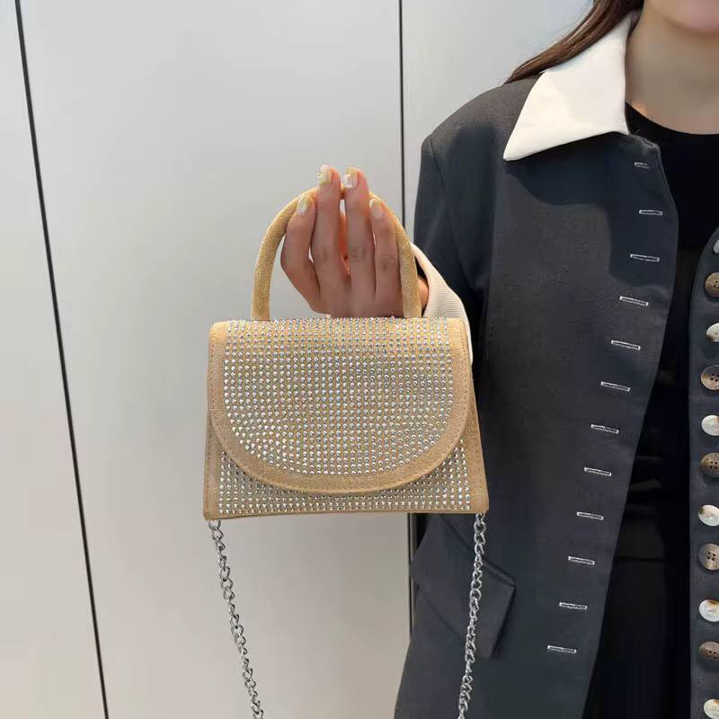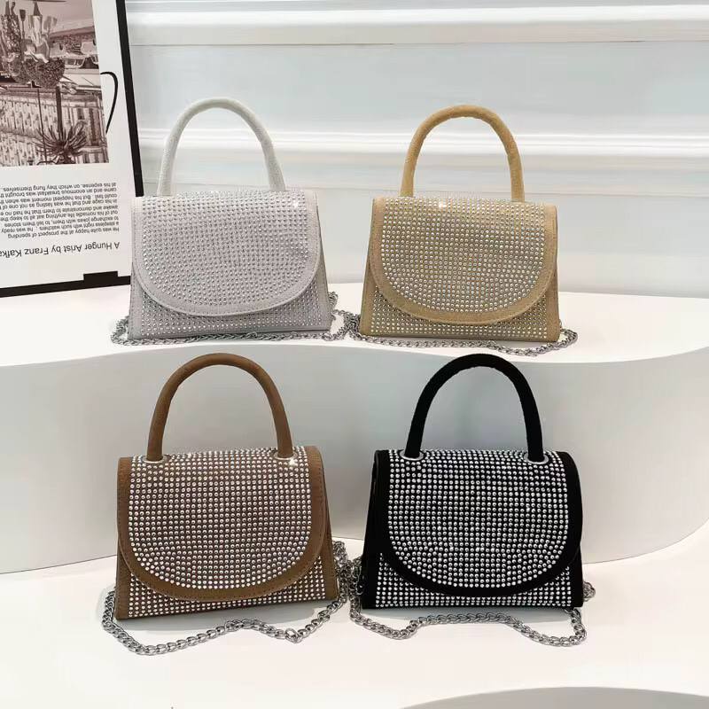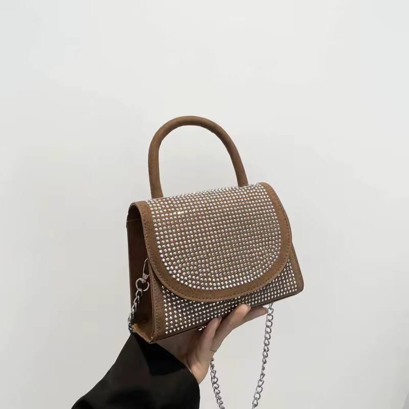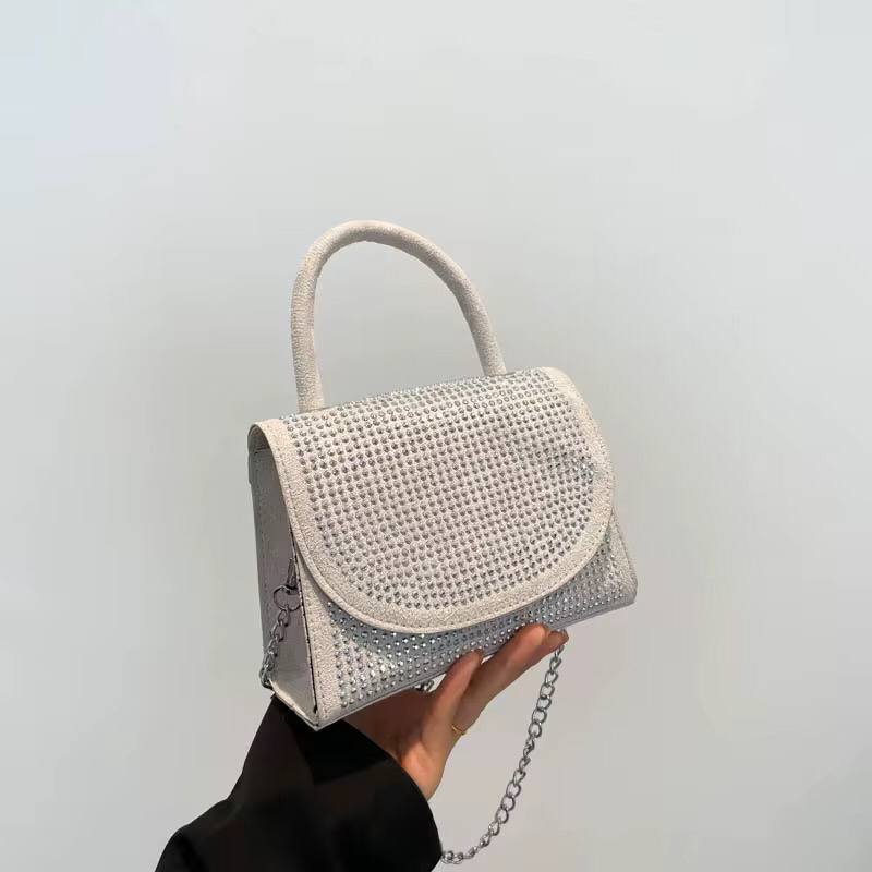 Shine with elegance using this cute flap saddle crossbody bag, adorned with diamond details. Made from premium PU leather, it's compact yet stylish. Available in White, Black, Cream, and Brown. Size: 18.5×14×7 cm.
