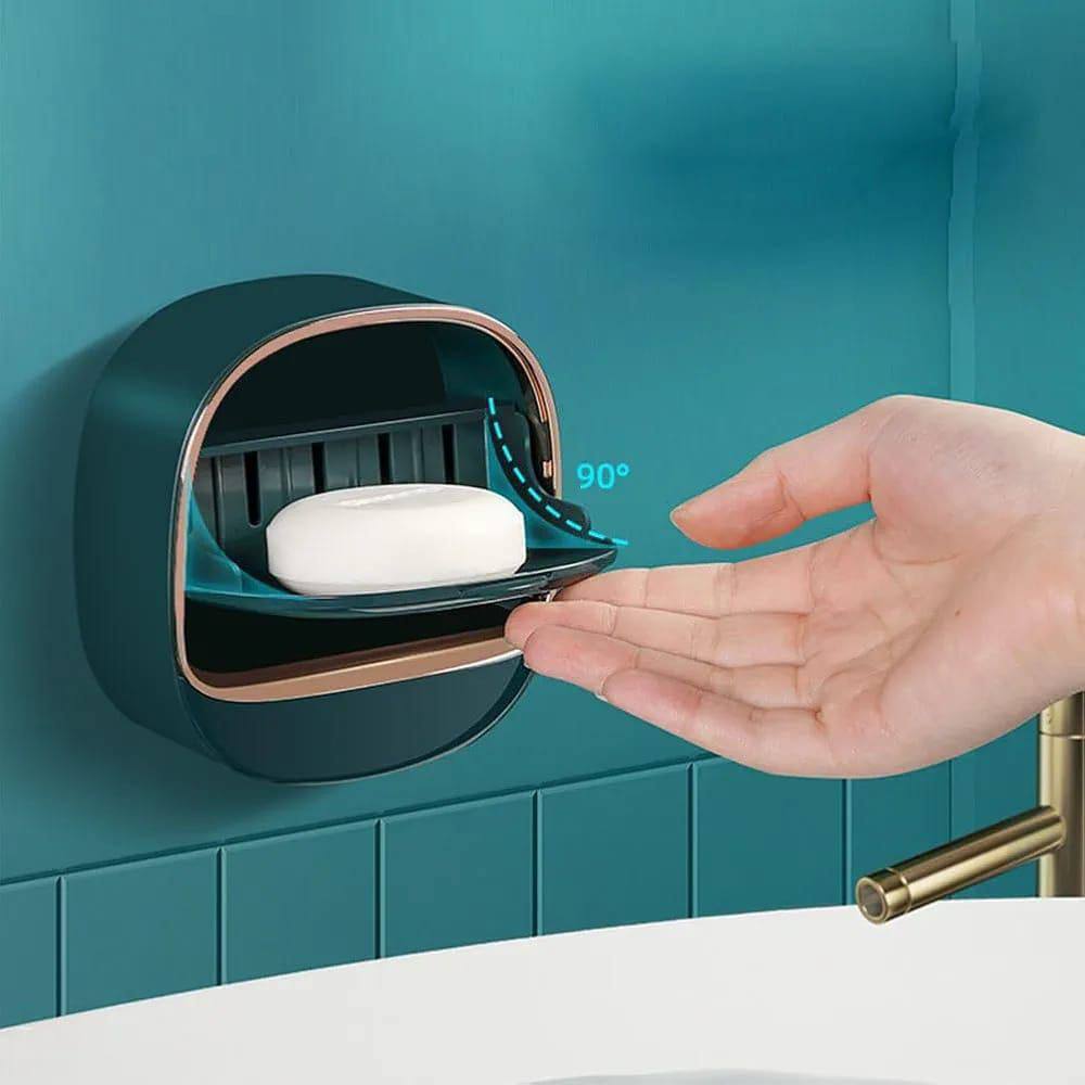Durable flip soap dish made of thickened ABS material. Easy to install—no drilling required! Features strong adhesive for secure hold. Ideal for bathroom, shower, or tub use. Keeps soap dry and within reach.