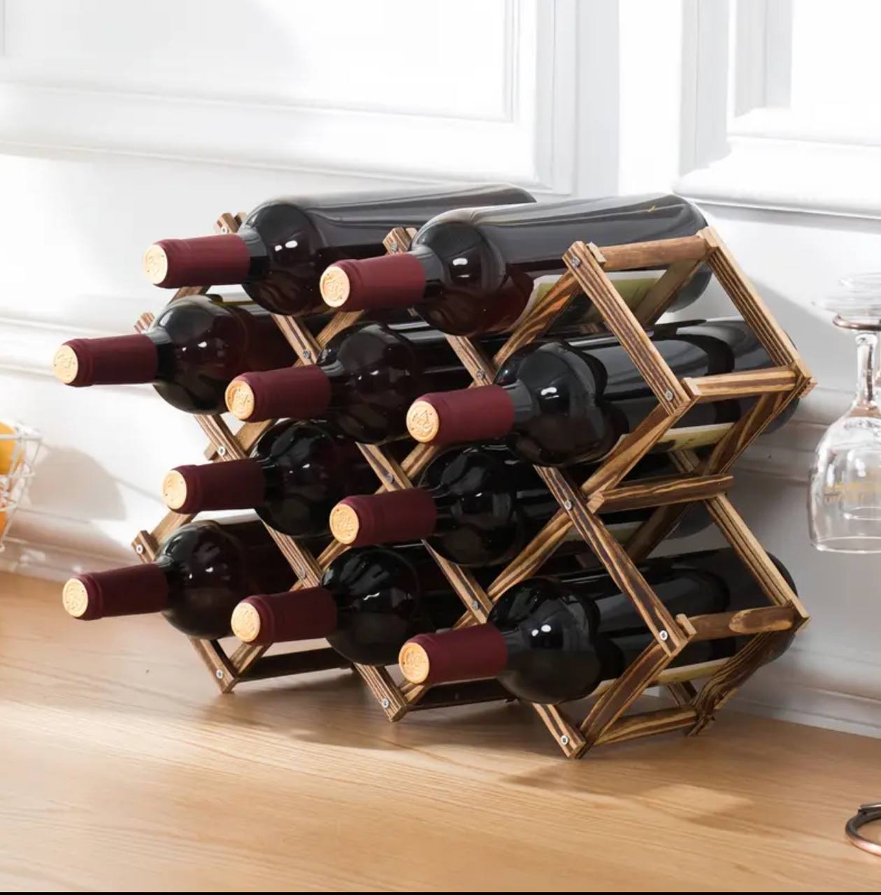 Display your wine in style with this foldable 10-slot wooden wine bottle rack! Perfect for home or restaurant use, it securely holds 10 bottles while saving space. Elegant, sturdy, and easy to store—ideal for wine lovers and entertainers alike!