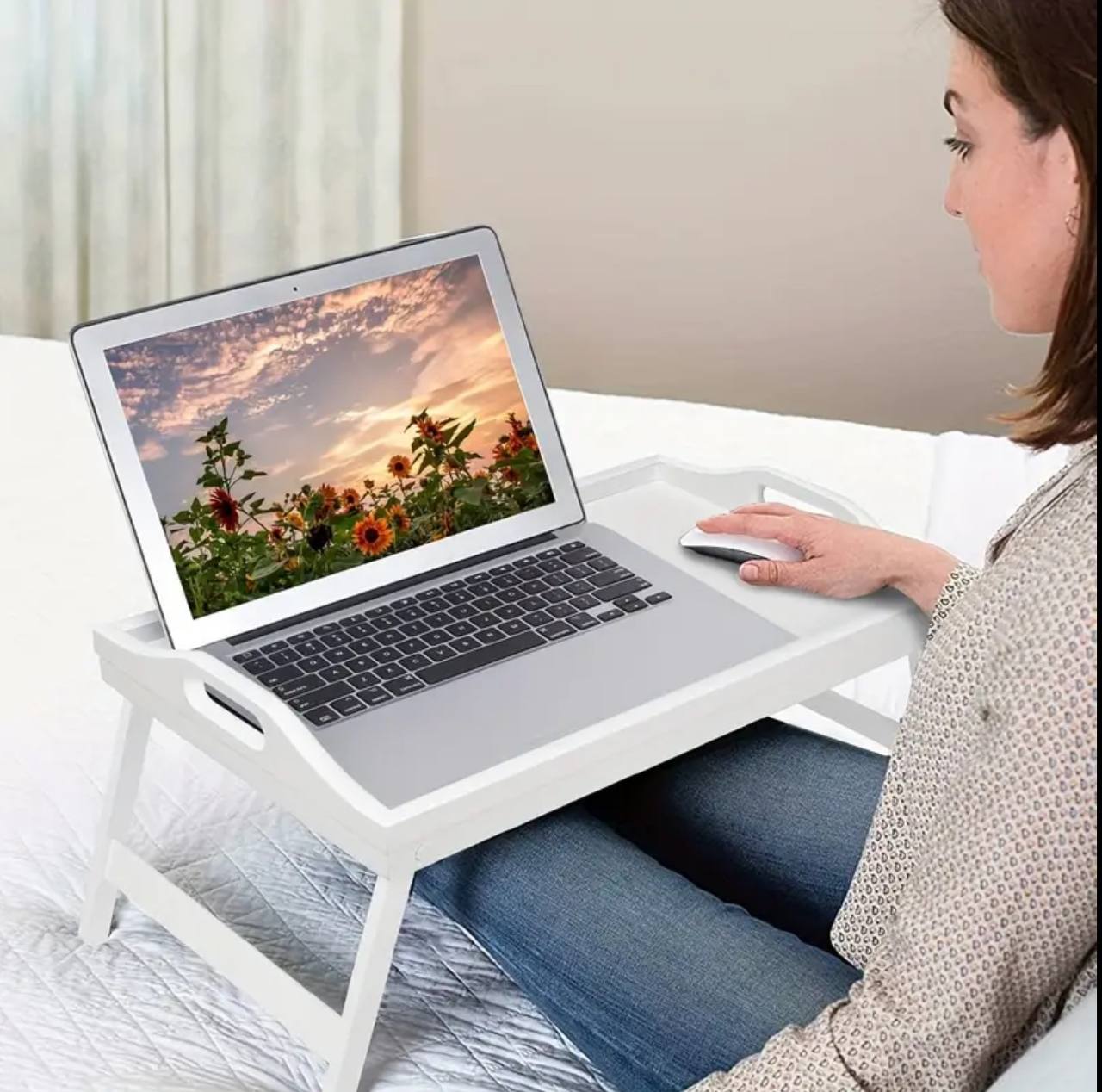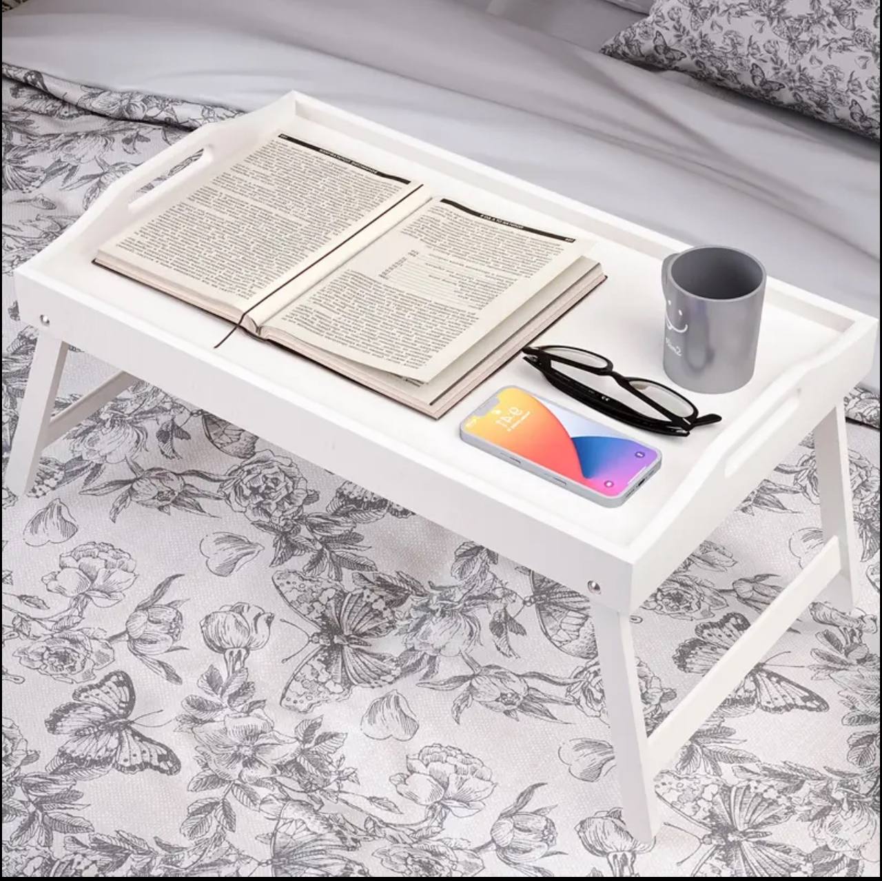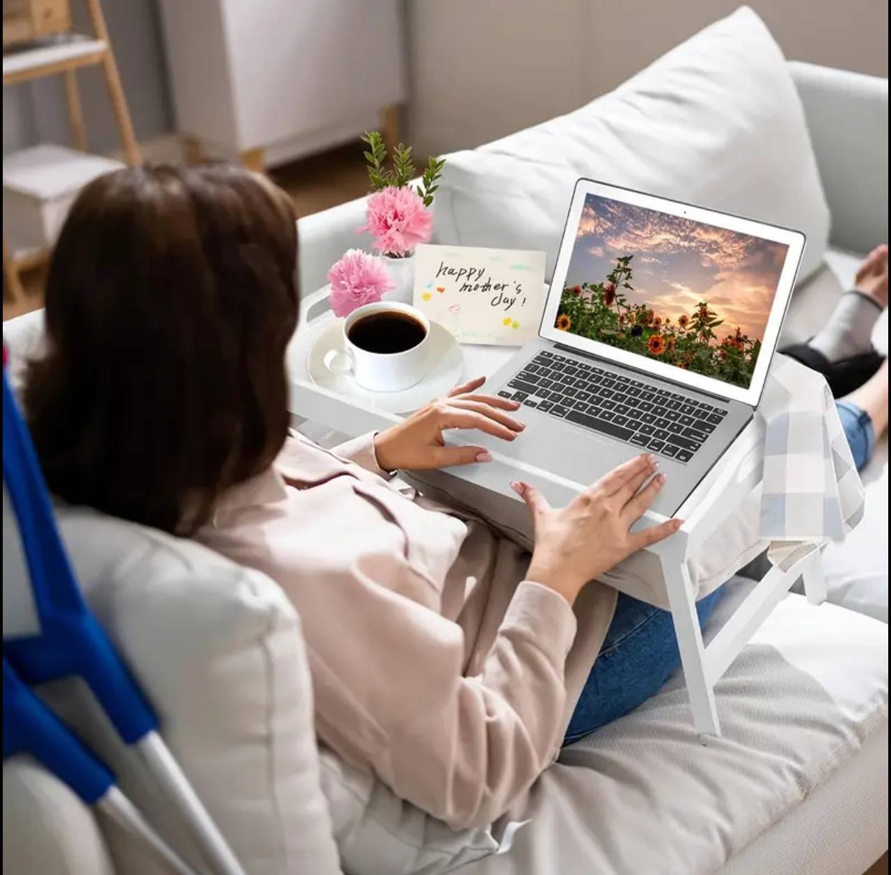 Experience versatility with the Foldable Bamboo Tray. Ideal as a laptop desk or breakfast-in-bed serving tray. Features foldable legs for portability and a sleek white finish, blending functionality with style. Perfect for home, office, or leisure use!