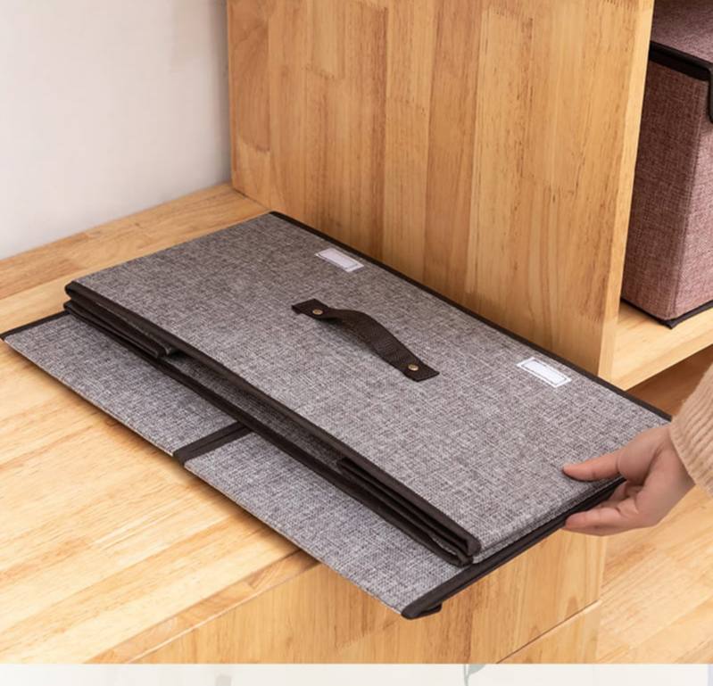 Foldable cotton linen closet storage box with double cover organizer