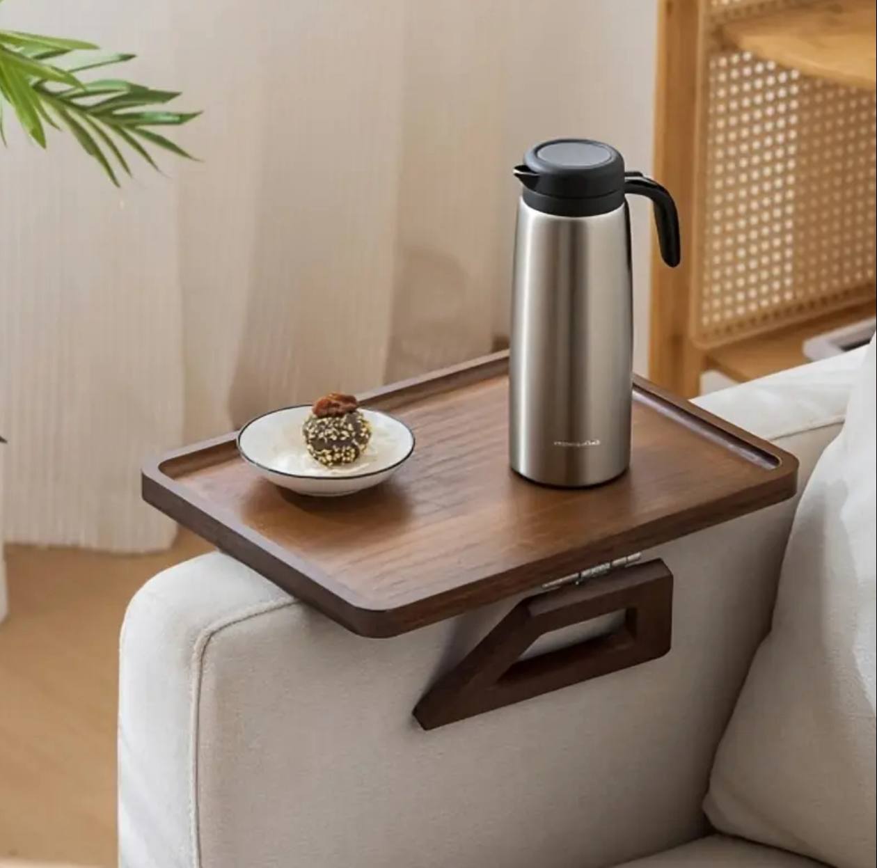 "Enhance your couch comfort with our Foldable Wooden Sofa Armrest Tray. Clips easily onto your sofa, perfect for holding remotes, phones, drinks, or snacks. Compact 33×24 cm design—convenient, stylish, and ideal for relaxing at home."
