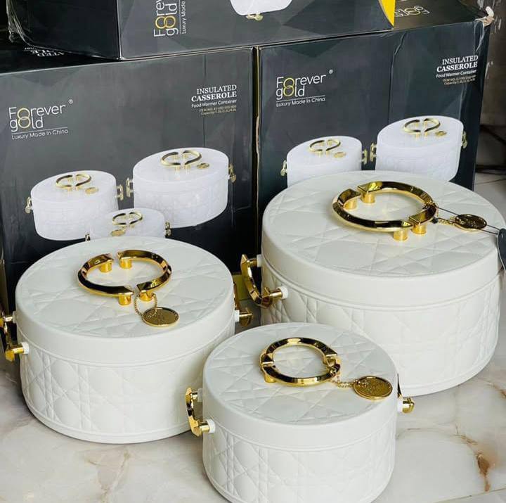 Forever Gold Hotpot Set – Features elegant matte prints with premium insulation. Includes 1.0L, 2.5L, and 4.0L capacities. Keeps food hot and fresh for hours. Stylish, durable, and perfect for home or entertaining.