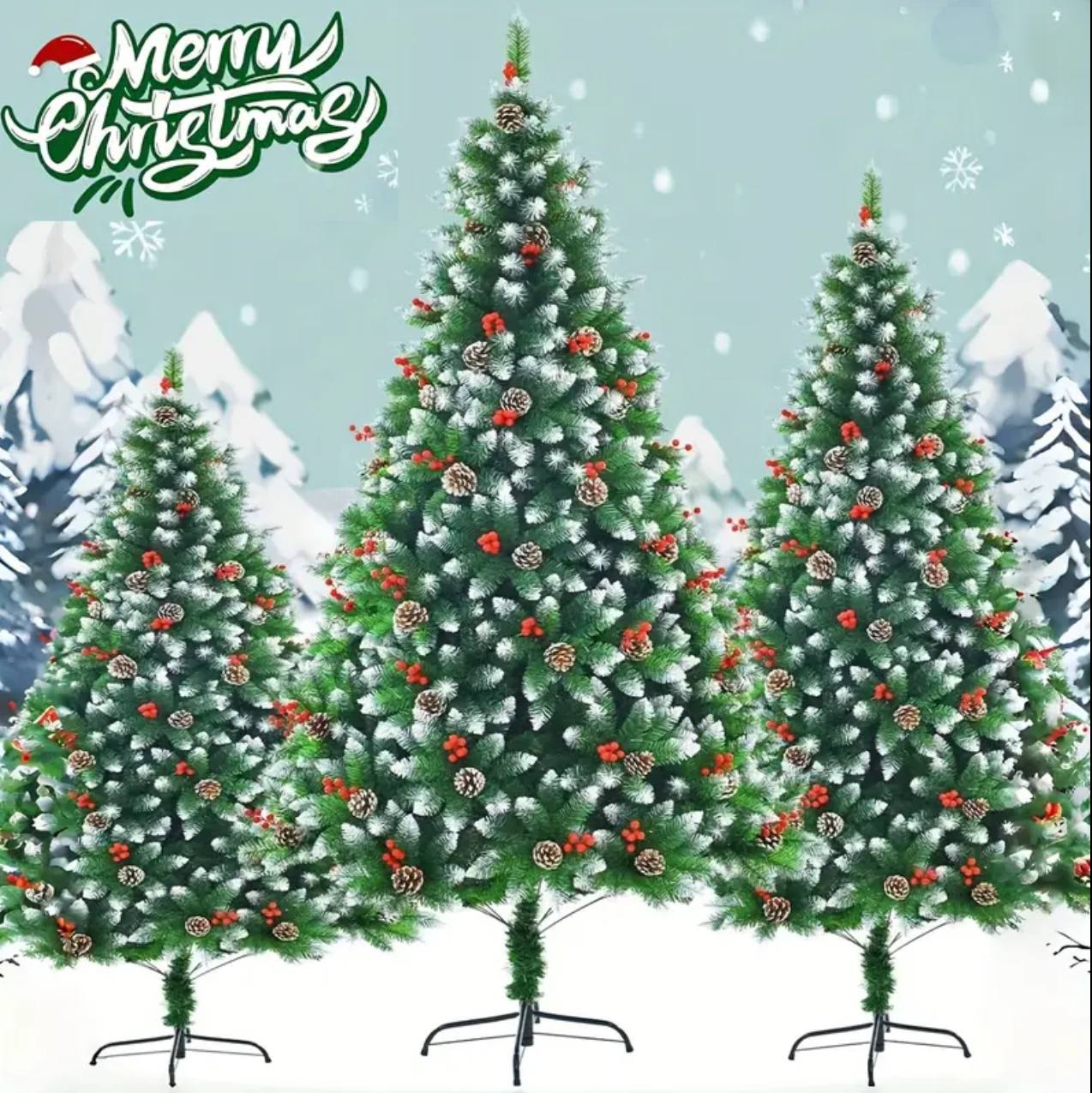 FROSTED CHRISTMAS TREES WITH CONES AND BERRIES high quality with 2000 leaves