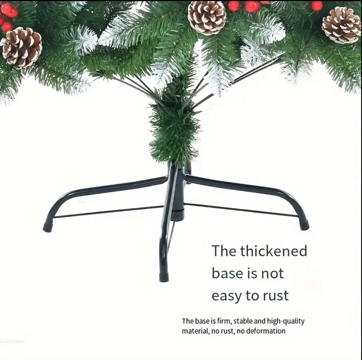 Decorate your home with a Frosted Christmas Tree featuring 2000 high-quality leaves, adorned with cones and berries. Available in 5ft (1.5m), 6ft (1.8m), 7ft (2.1m), and 8ft (2.4m), this stunning tree brings elegance and festive cheer to any space.