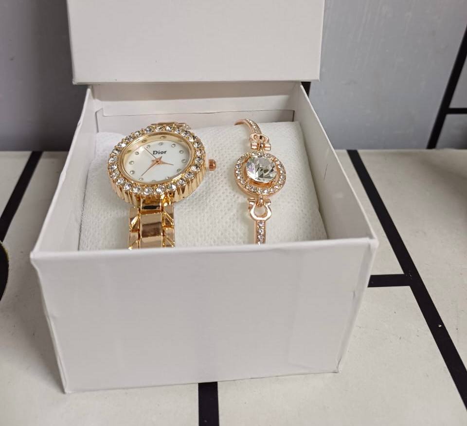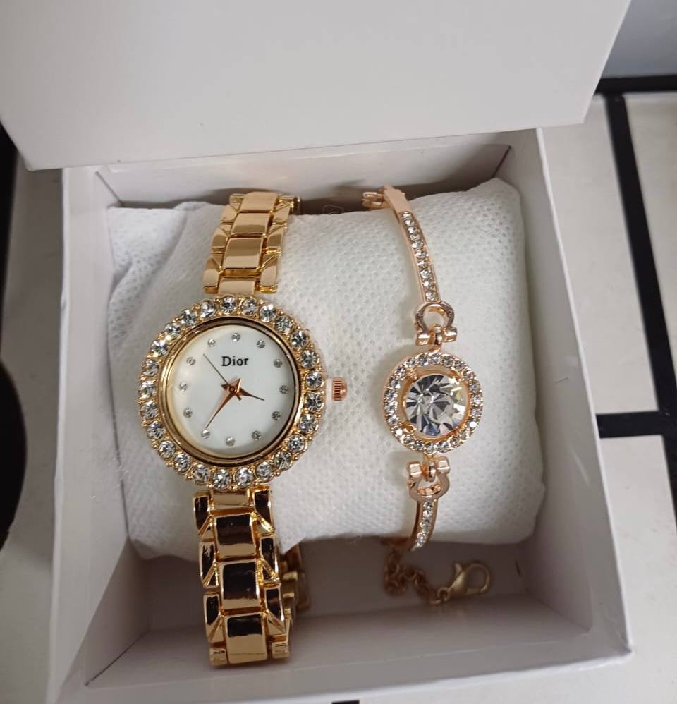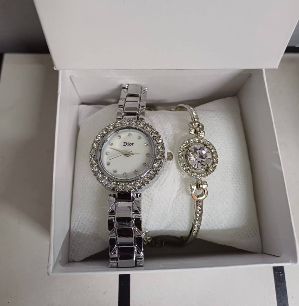 Delight the special woman in your life with this elegant gift set, featuring a high-quality watch, matching bracelet, and a stunning gift box. Perfect for any occasion—party, business, or daily wear—in timeless silver and rose gold.