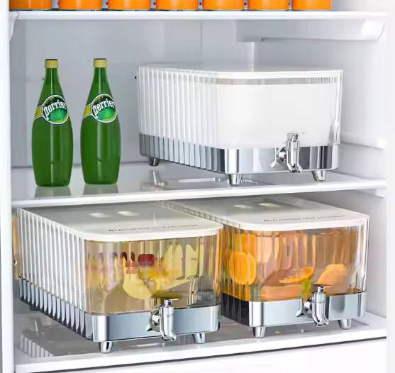 Serve in style with this 5.3L Glass Beverage Dispenser. Made from food-grade PC+ABS, it's durable, leakproof, and fridge-friendly. Features a clamp lid, spigot, and easy-lift handles—perfect for hot or cold drinks at any event.