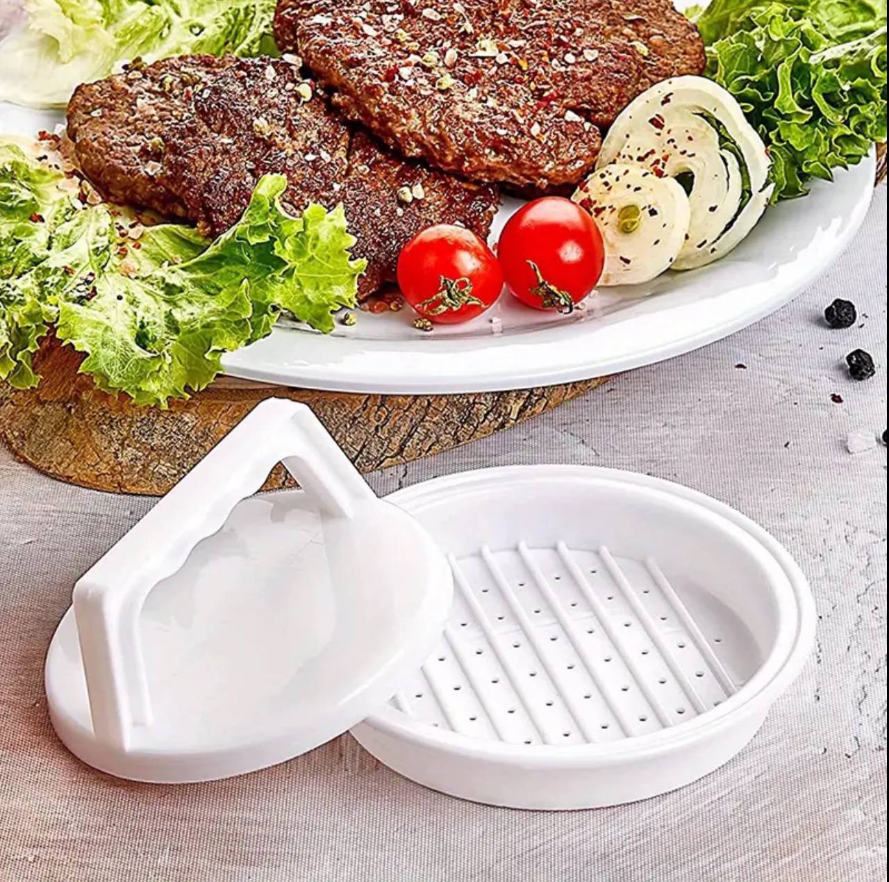 Make perfect patties every time with our Hamburger Press Patty Maker. Crafted from durable PVC, it features a 10.6cm pressing diameter and 13.2cm mold diameter for consistent, professional results. Easy to use—DM, call, or WhatsApp to order today!