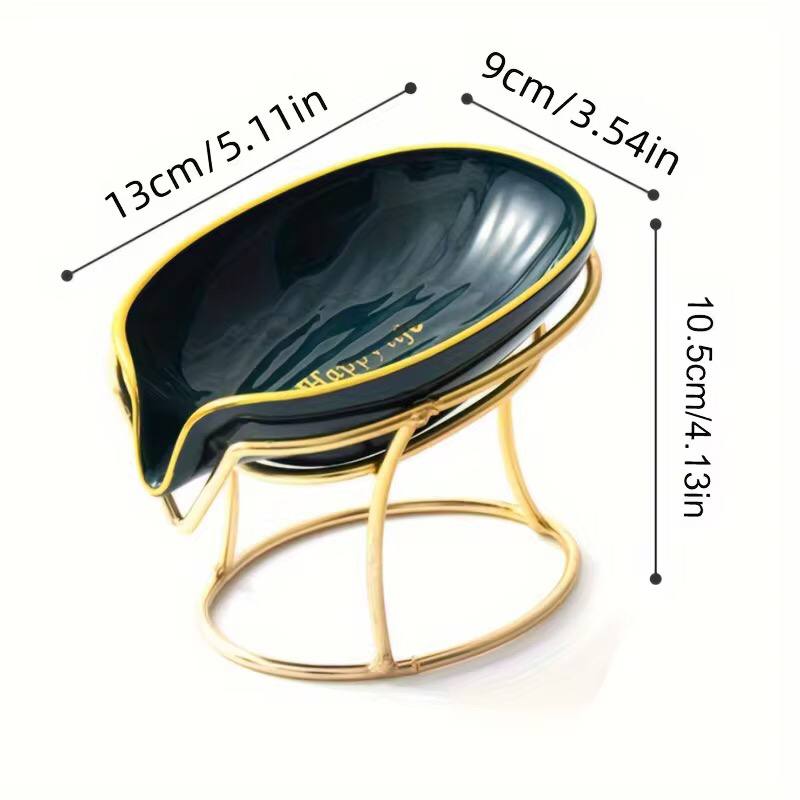 Happy life 45 degree slanted self draining soap dish with a golden stand