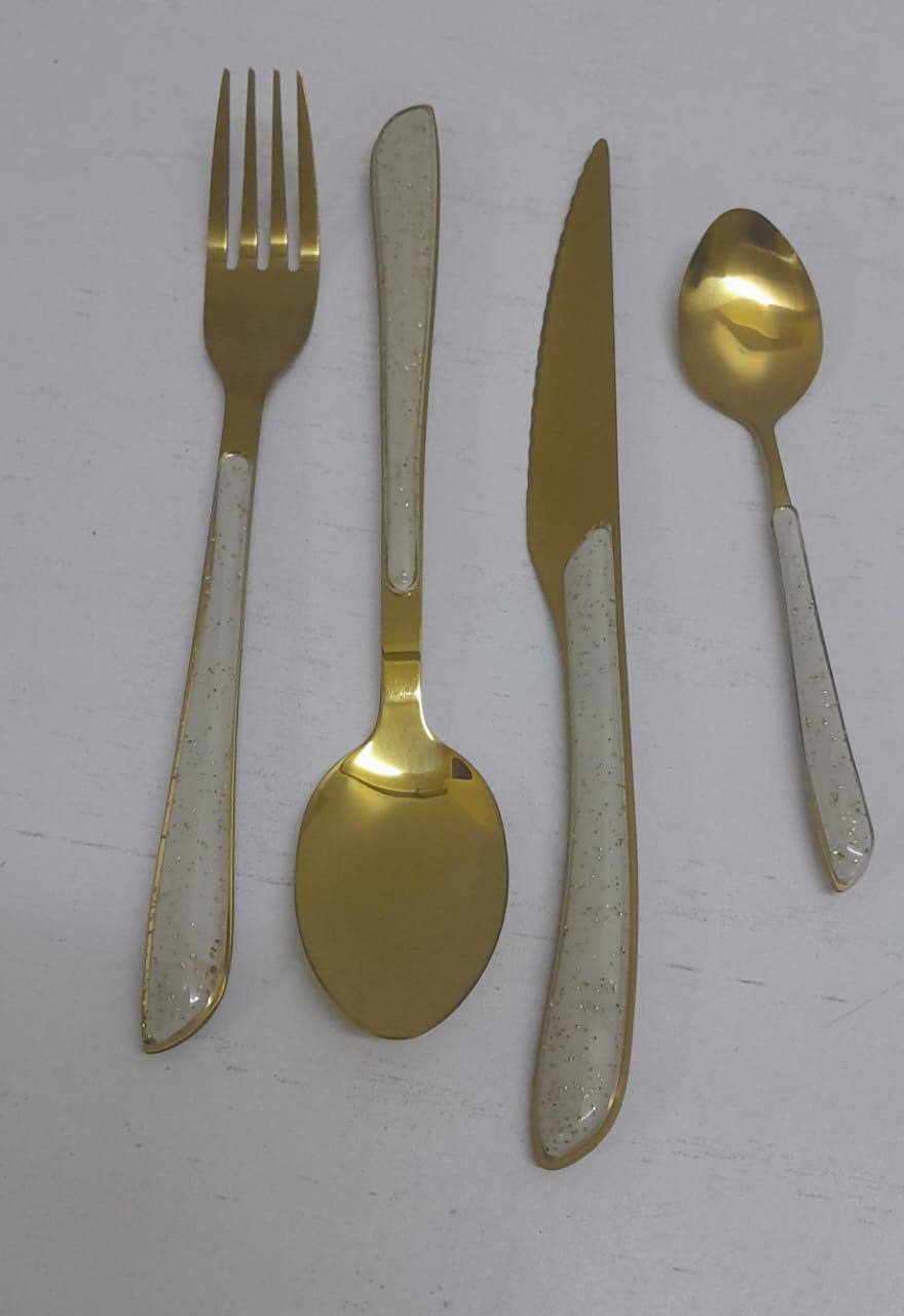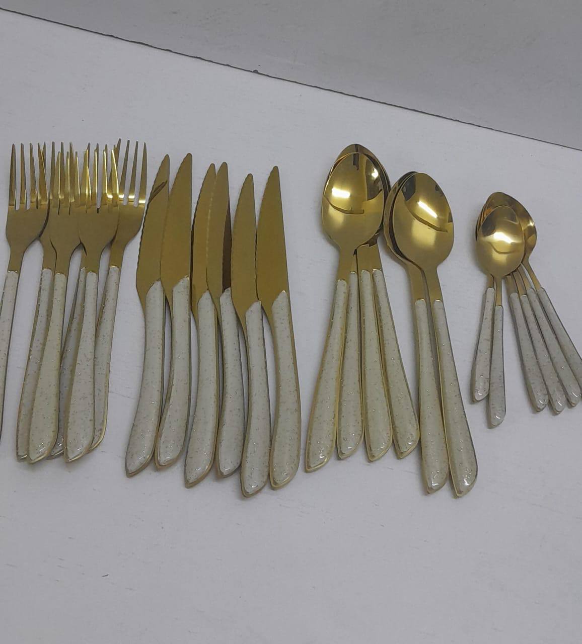 Elevate your dining experience with this heavy-duty 24-piece cutlery set. Includes 6 each of forks, knives, spoons, and teaspoons. Durable, stylish, and available in elegant gold—perfect for everyday use or special occasions.