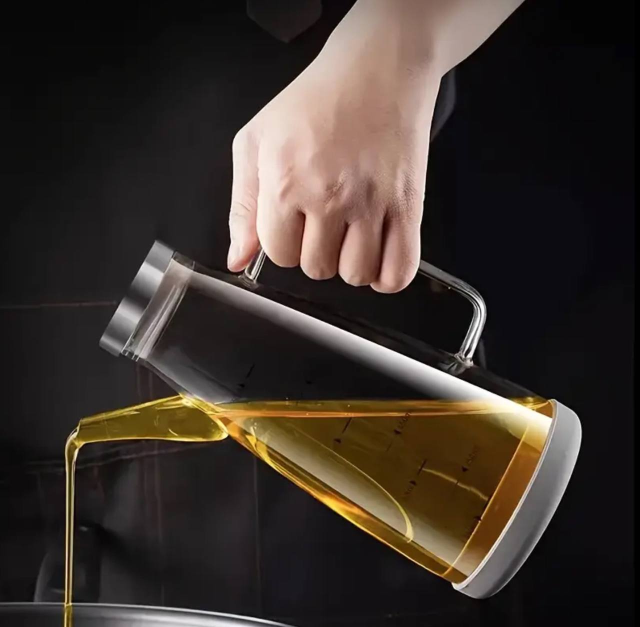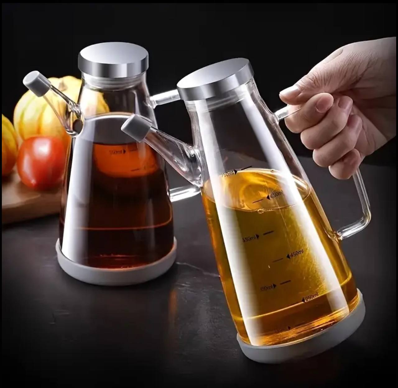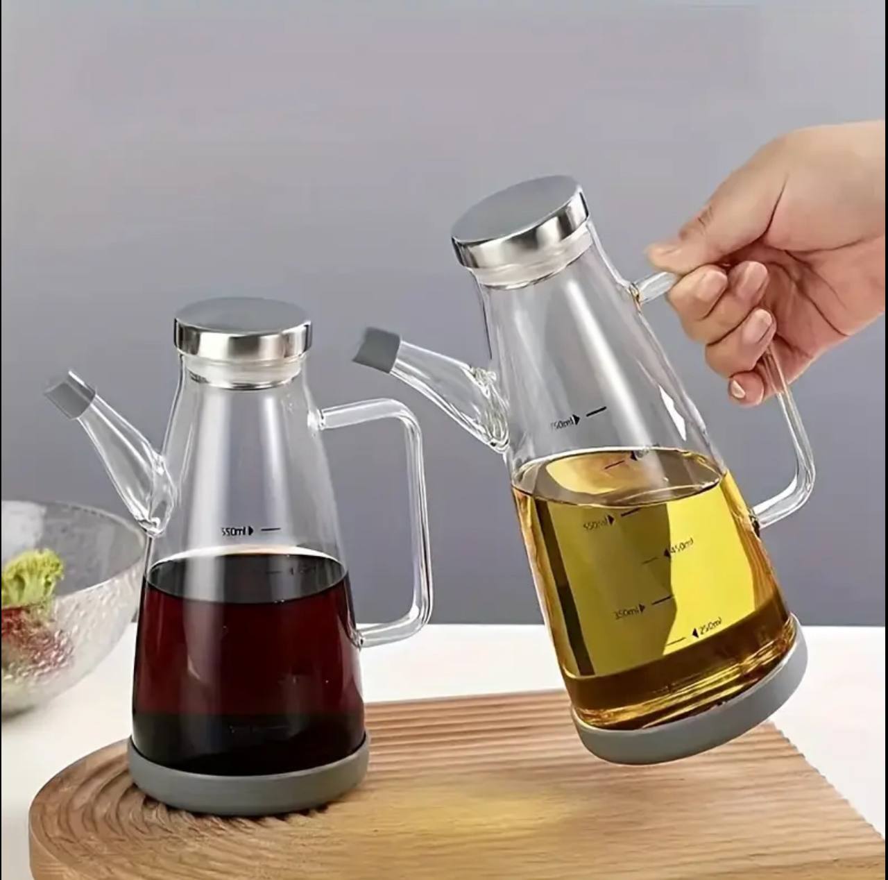 Enhance your kitchen with the High Borosilicate Glass Oil Bottle (800ml). Durable, heat-resistant, and featuring an anti-drip spout for precise pouring. Its non-slip silicone base ensures stability, making it perfect for oil, vinegar, and liquid condiments.