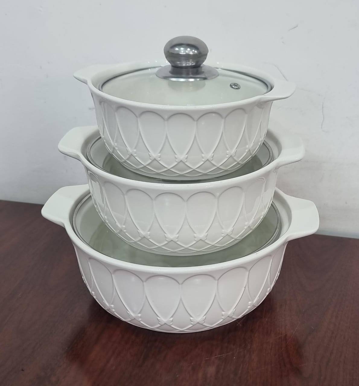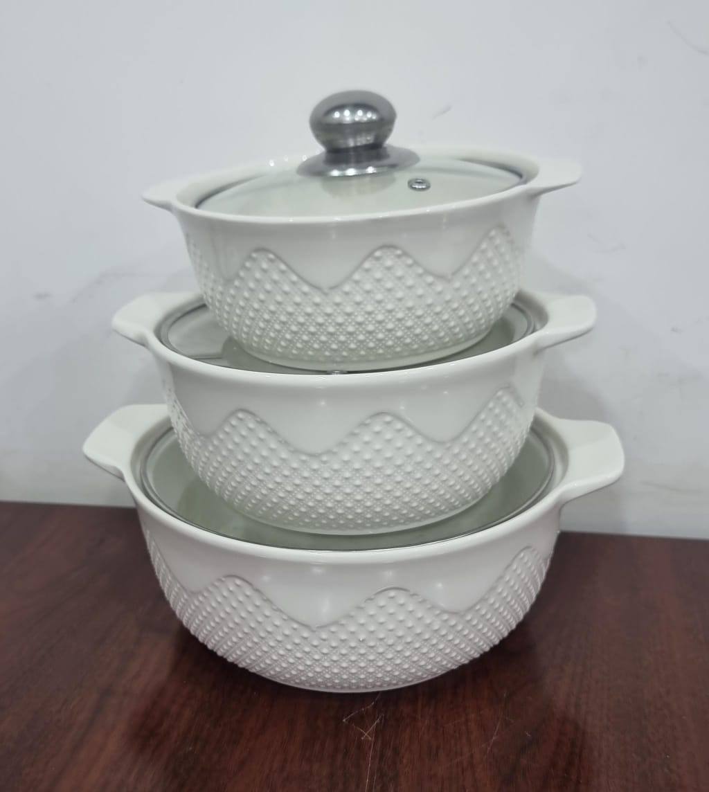 Serve in style with our high-quality 3in1 ceramic serving dish set—includes 3L, 2L, and 1L capacities. Perfect for family meals or special occasions. Elegant, durable, and heat-resistant for flawless presentation every time!