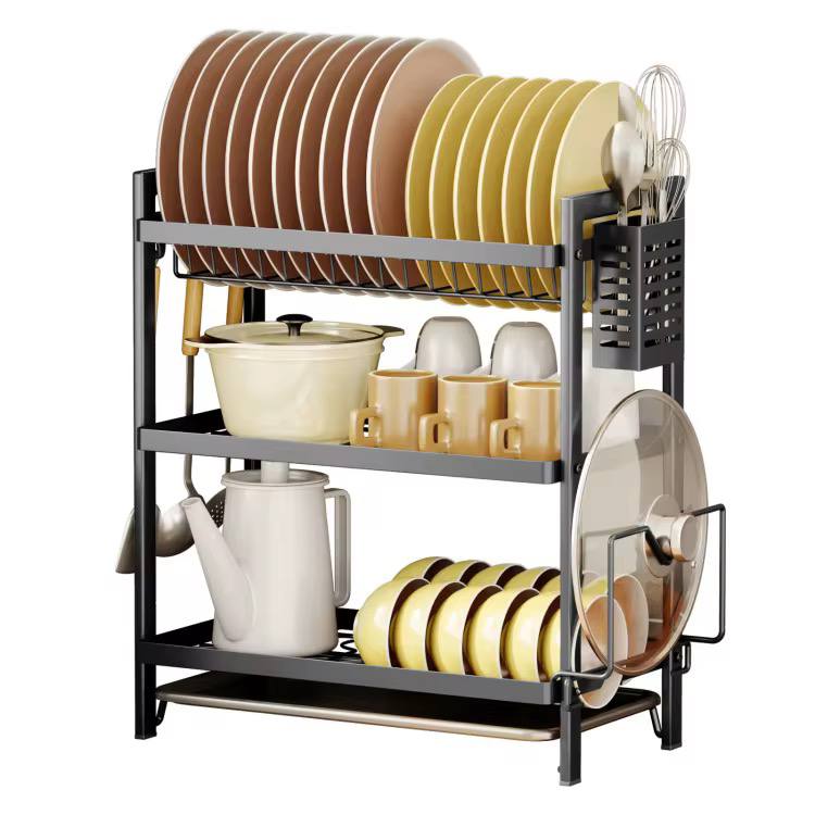 Maximize your kitchen space with this high-quality, heavy-duty 3-layer dish rack! Designed for durability, it features ample storage, a rust-resistant finish, and a convenient cutlery holder. Perfect for organizing plates, bowls, and utensils while keeping your countertop neat and dry