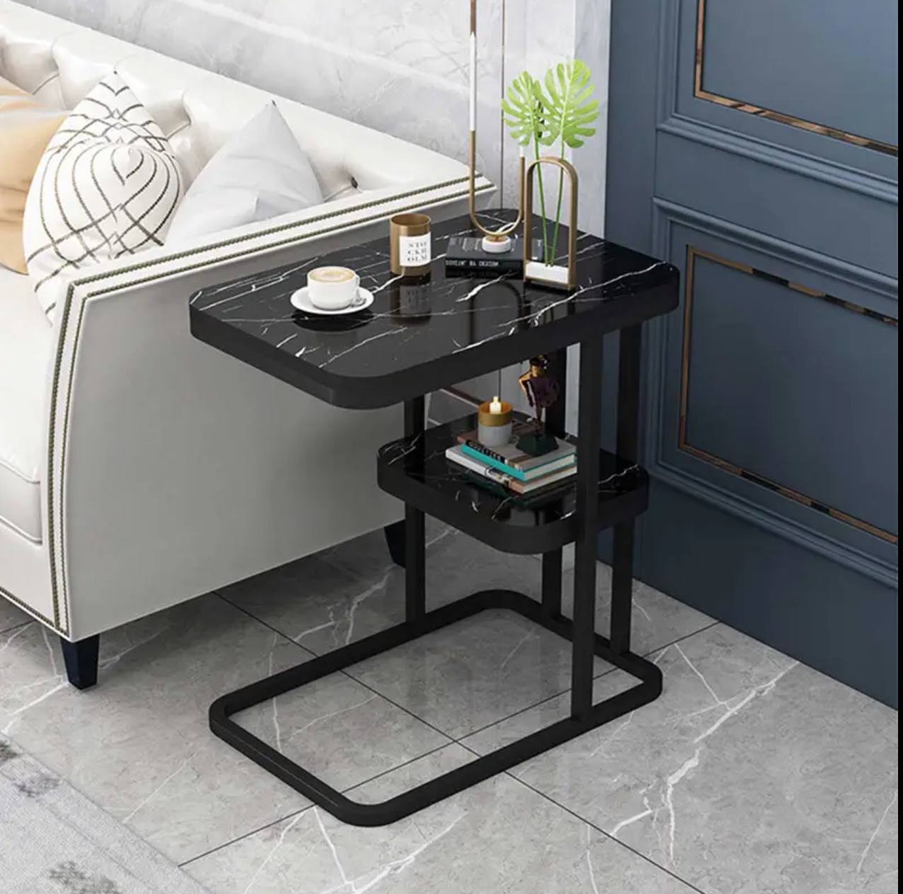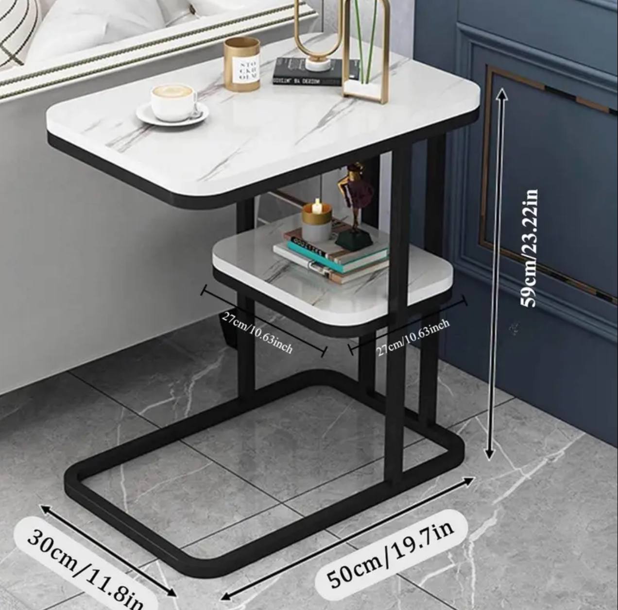 Elevate your space with this high-quality side table! Measuring 58cm x 50cm x 30cm, it features a luxurious white or black marble texture, adding elegance and functionality to any room. Perfect for modern homes. Order yours today
