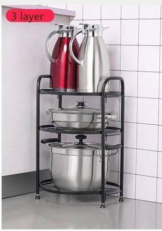 Maximize kitchen storage with this high-quality, three-layer creative kitchenware organizer. Made from thickened metal, it’s perfect for pots, pans, or decorative items. Compact yet sturdy, measuring 36 cm in diameter and 52 cm in height.