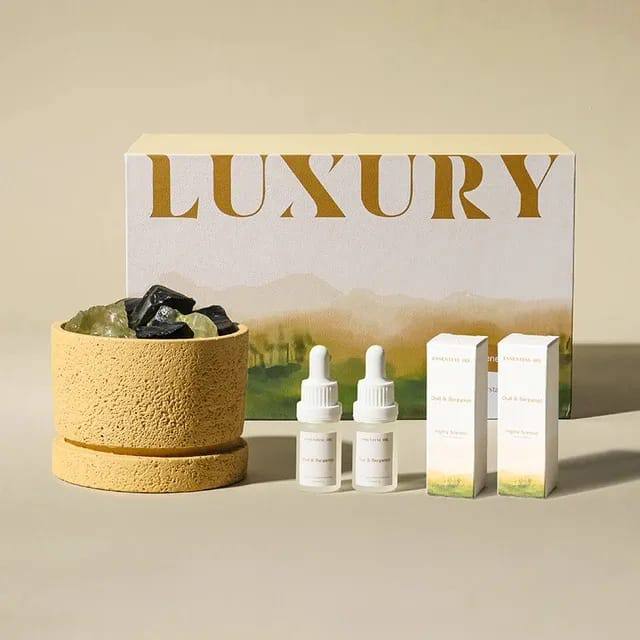 Transform your space with our Home Fragrance Natural Stone Crystal Diffuser. Infused with luxurious scents—Secret Garden, Endless Green, and Oud & Bergamot—it includes 400g of crystal stones and two 10ml oil refills for long-lasting aromatherapy bliss.
