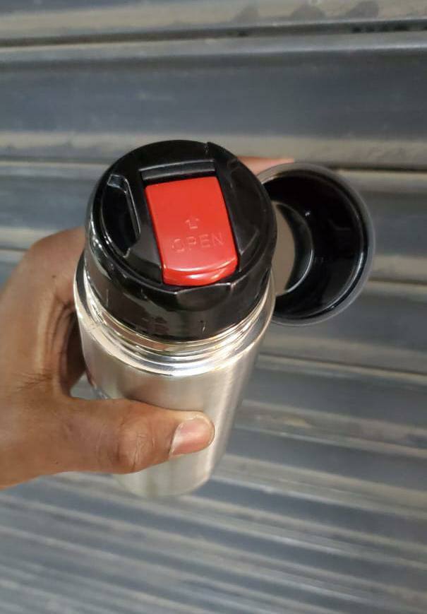 Stay refreshed on the go with our 500ml silver stainless steel flask. Keeps drinks hot or cold for hours. Sleek, durable, and leak-proof—comes with a handy carry bag for ultimate convenience!