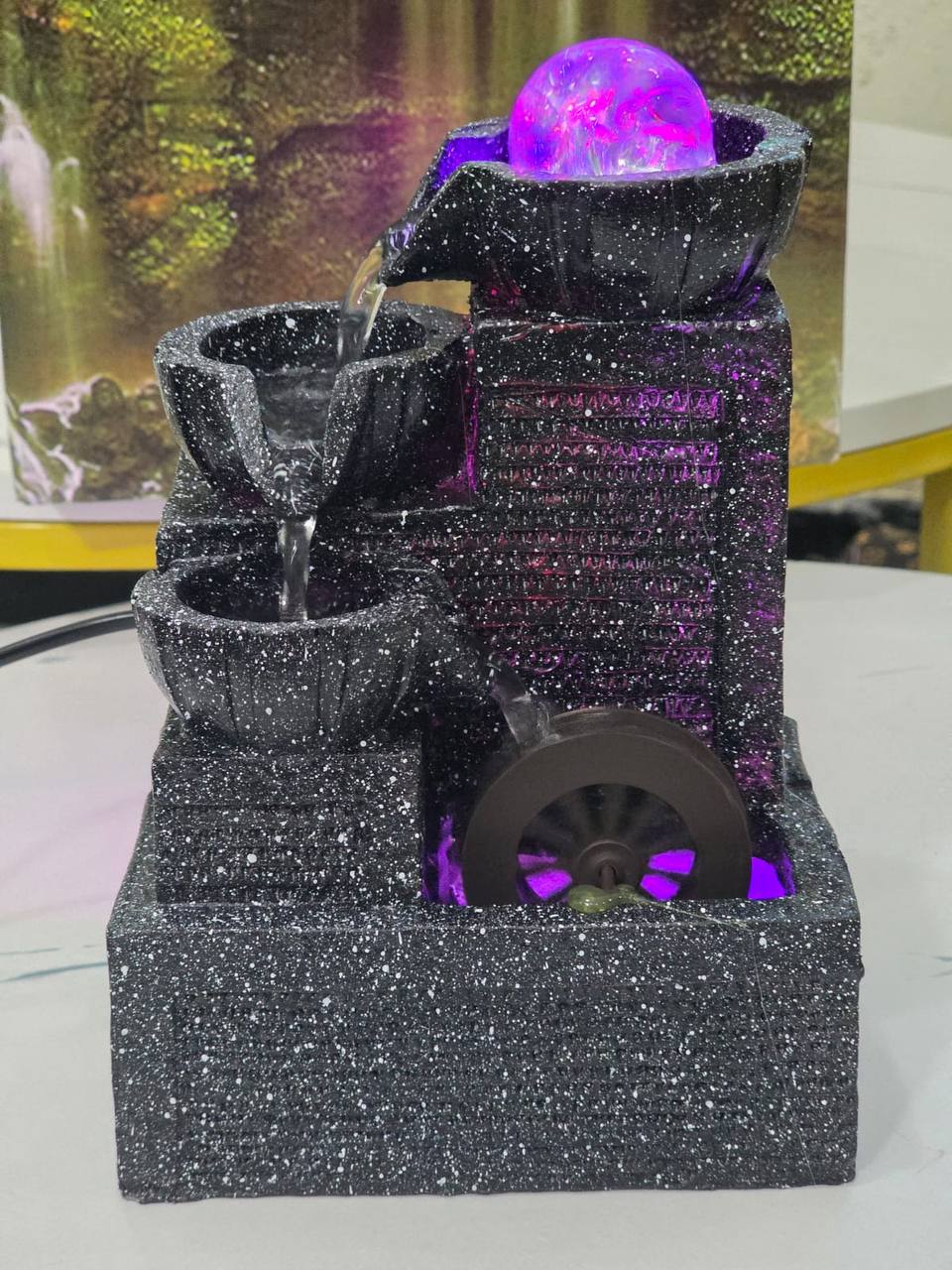 Indoor Waterfall Fountain Table Decor – Size: 21×12×16cm. Features a three-tier rockery design with soothing cascading water and built-in LED lights. A relaxing tabletop ornament that adds tranquility and charm to any room or office.