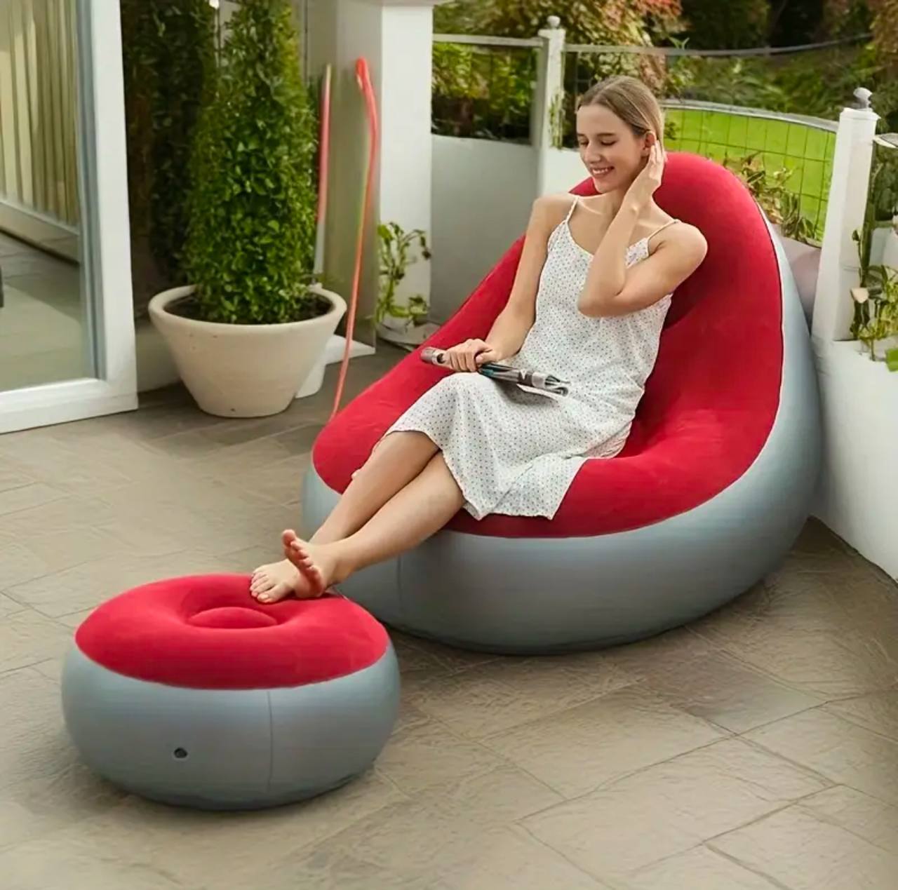 Unwind in ultimate comfort with our Inflatable Lazy Sofa and footrest! Perfect for indoor or outdoor lounging, it’s durable, stylish, and easy to set up. Comes with a free pump. Upgrade to the plush football design for extra fun