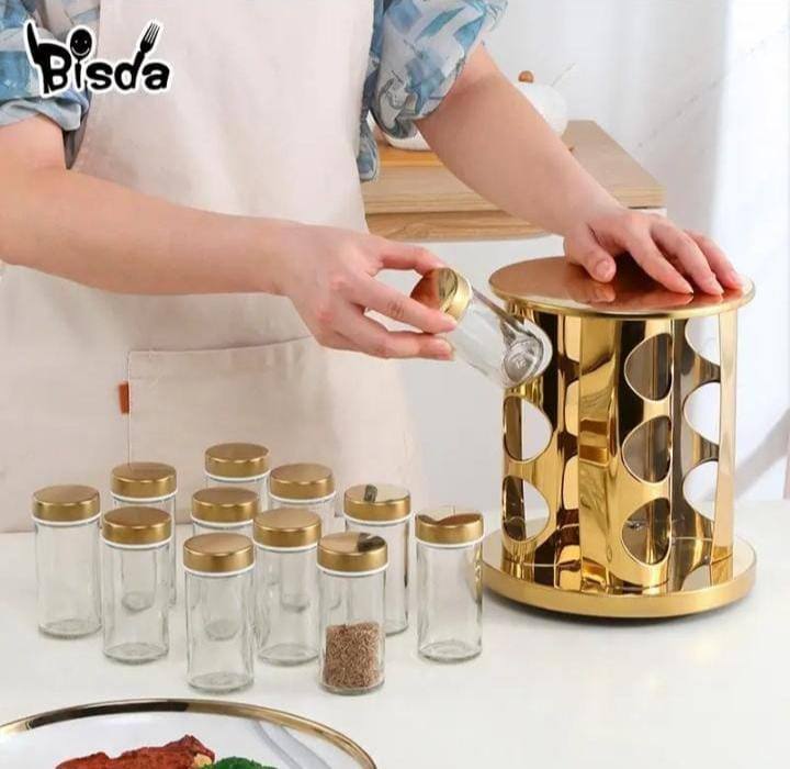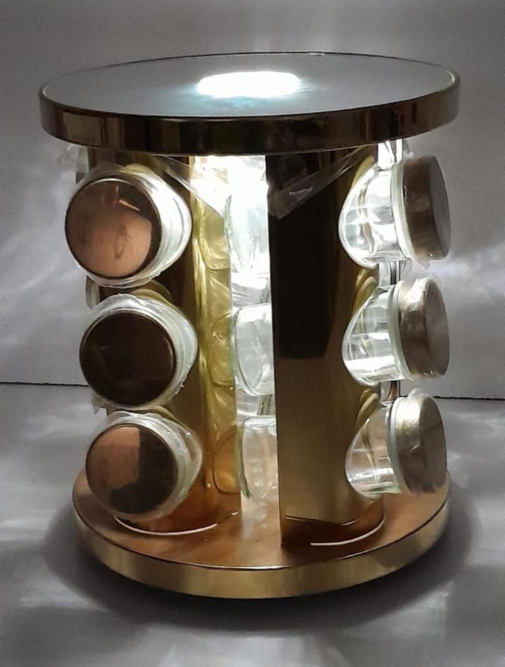 Elevate your kitchen with this LED touch rotating spice rack in luxurious gold. Includes 12 glass jars (100ml each) for easy access and stylish storage. Sleek, functional, and perfect for modern cooking spaces.