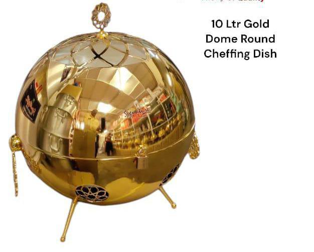 Serve in style with this luxurious, classy gold round chafing dish. With a generous 10-liter capacity, it's perfect for elegant buffets, events, or upscale dining presentations.