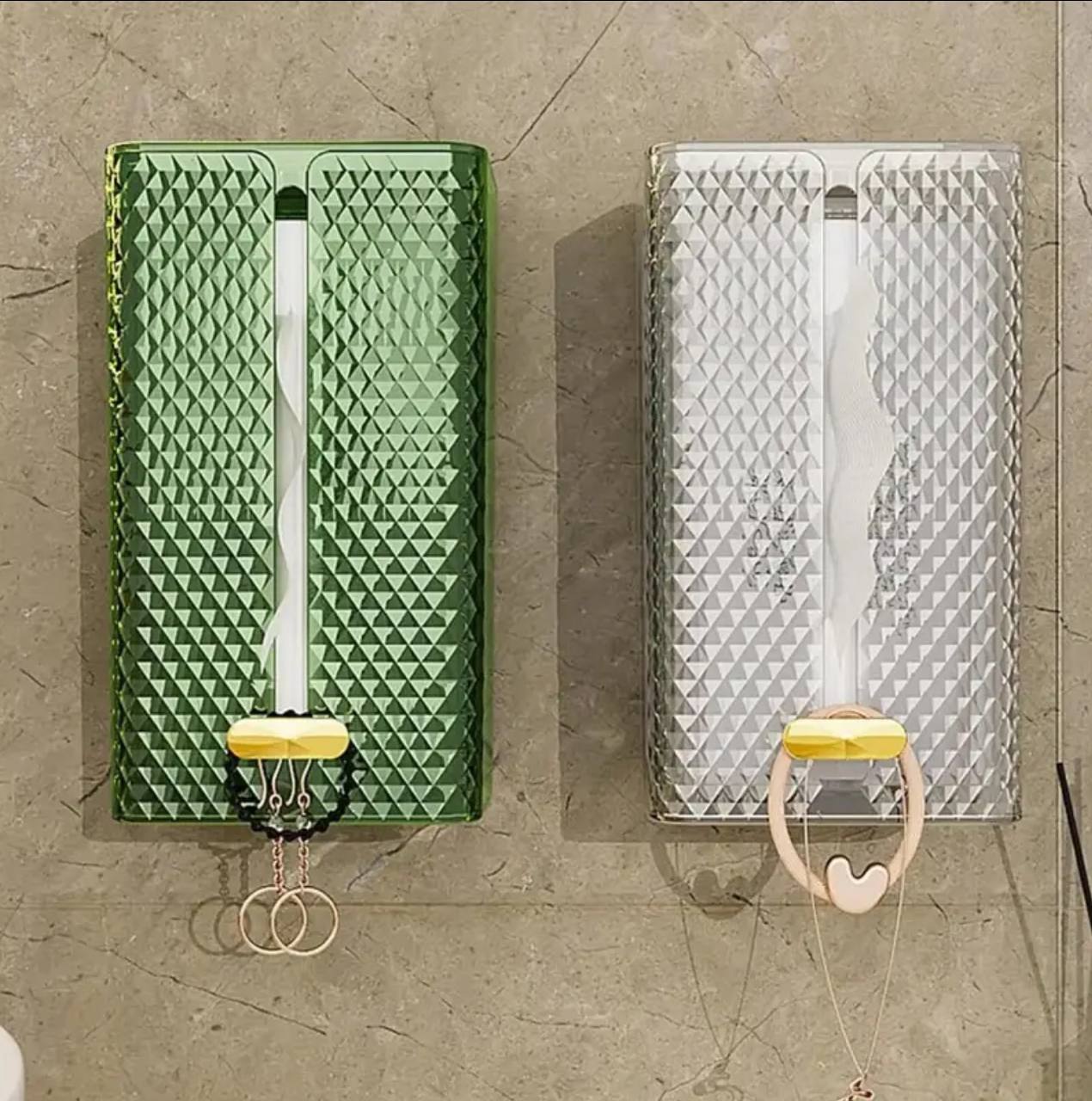 Upgrade your space with the Luxury Diamond Tissue Box! This wall-mounted acrylic dispenser offers a stylish way to store tissues. Available in Green, Brown, and Transparent, it’s perfect for the bathroom, kitchen, or office. Add elegance to your decor today!