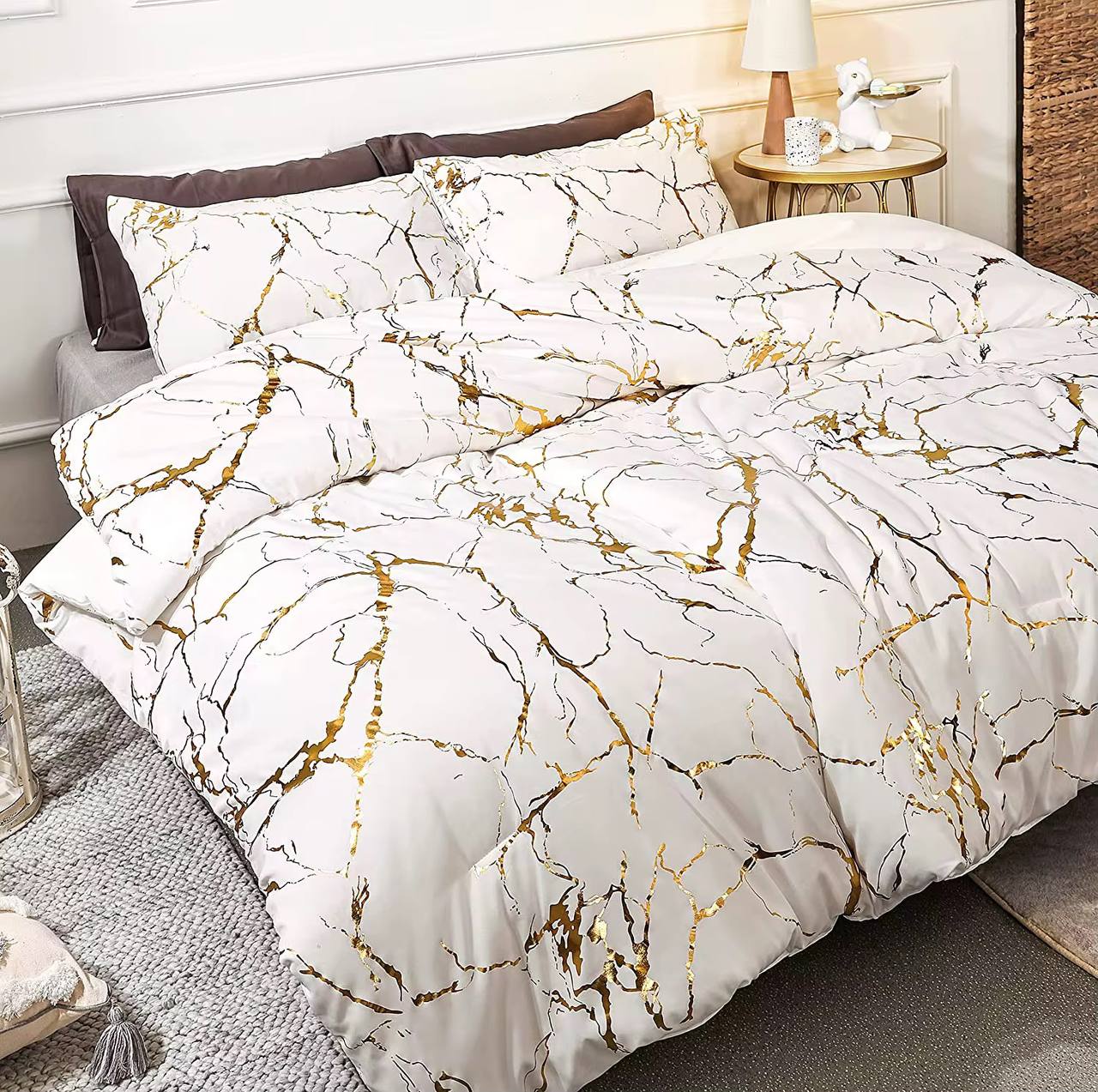 Transform your bedroom with this 4pcs Marble Duvet Cover Set. Includes 1 duvet cover, 1 bedsheet, and 2 pillowcases. Soft, stylish, and modern—adds a luxurious marble touch for a cozy and elegant sleep space.