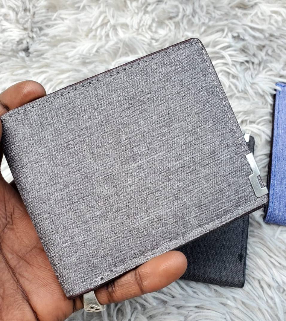 Men’s Denim Wallets – Sleek and stylish with a slim design! Features 3 card holder pockets. Made from durable denim material. Available in Grey, Blue, and Black. Perfect everyday essential. DM or call to order now!