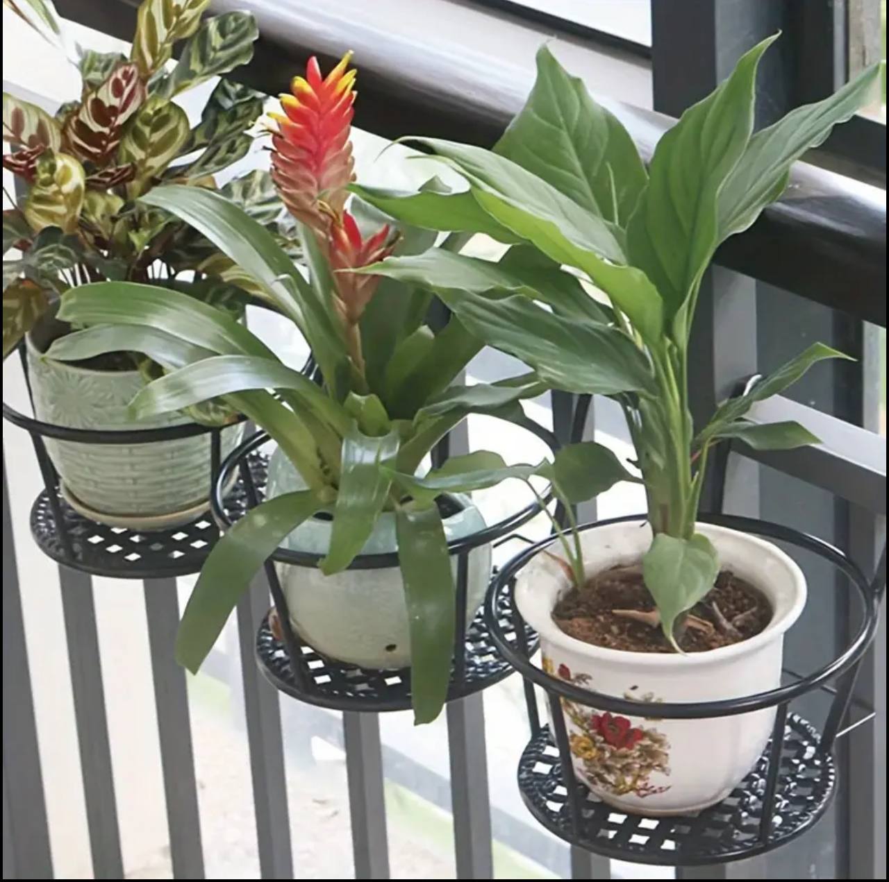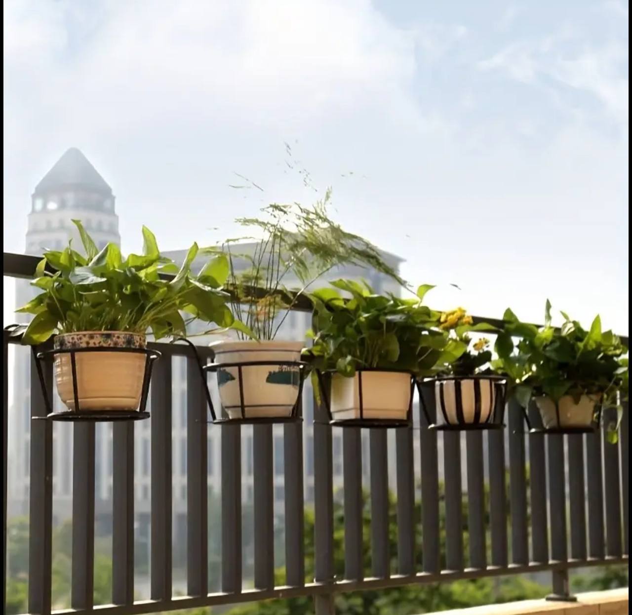 Display your plants in style with this metallic over-the-balcony flower pot holder. Durable and weather-resistant, it’s designed for secure placement and adds charm to any balcony. Perfect for showcasing flowers or greenery while maximizing outdoor space.