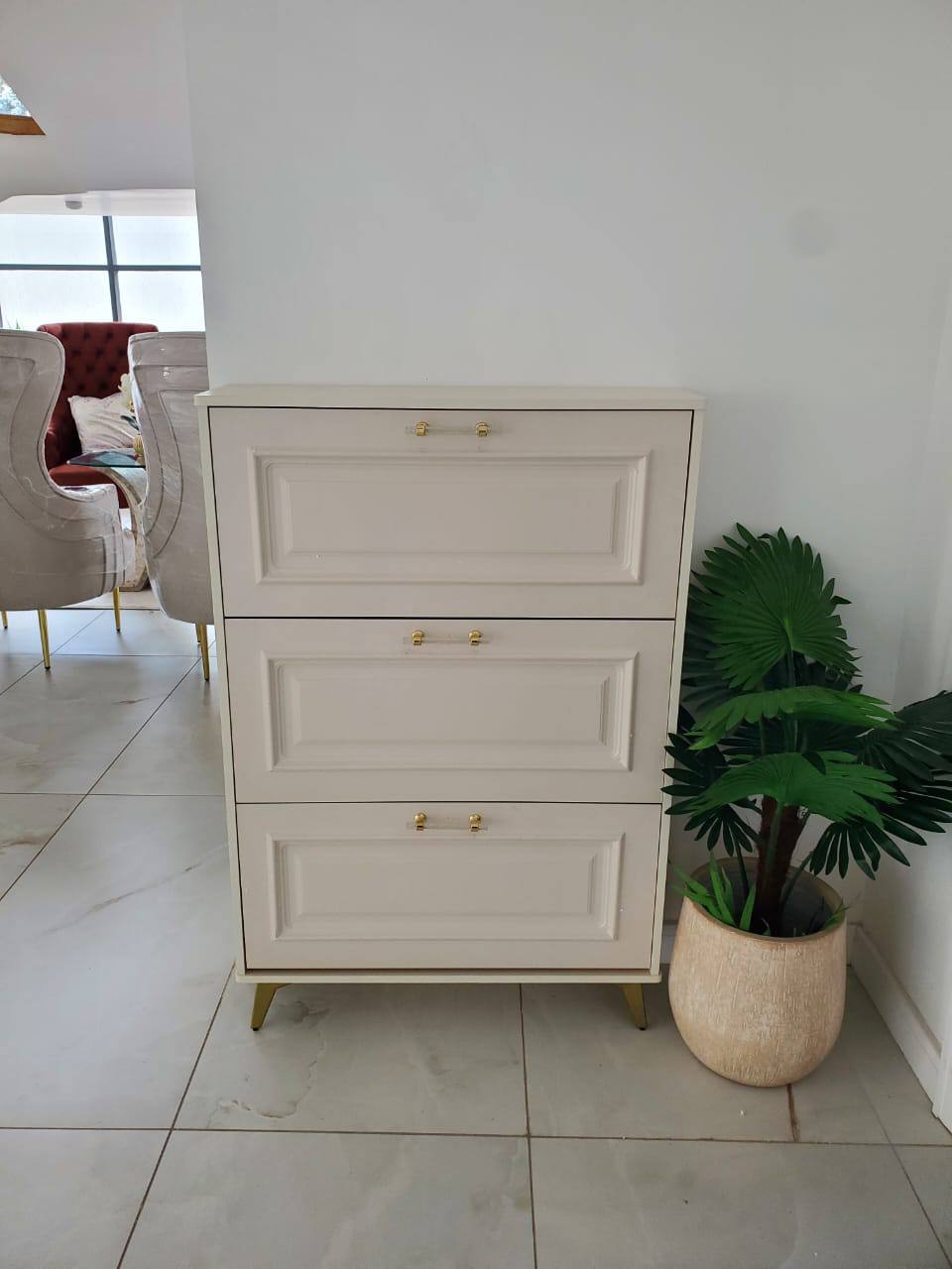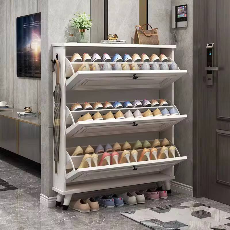 Upgrade your entryway with this modern luxury bucket flip shoe cabinet. Space-saving and stylish, it fits up to 36 pairs. Perfect for minimalist hallways—maximize storage without sacrificing elegance. Size: 120×24×80cm.