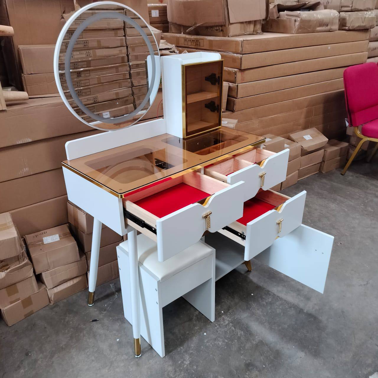Add elegance to your space with this modern luxury dressing table set! Featuring a sleek design, LED mirror, and spacious drawers—perfect for organizing makeup and accessories. A chic, functional upgrade to any bedroom décor.