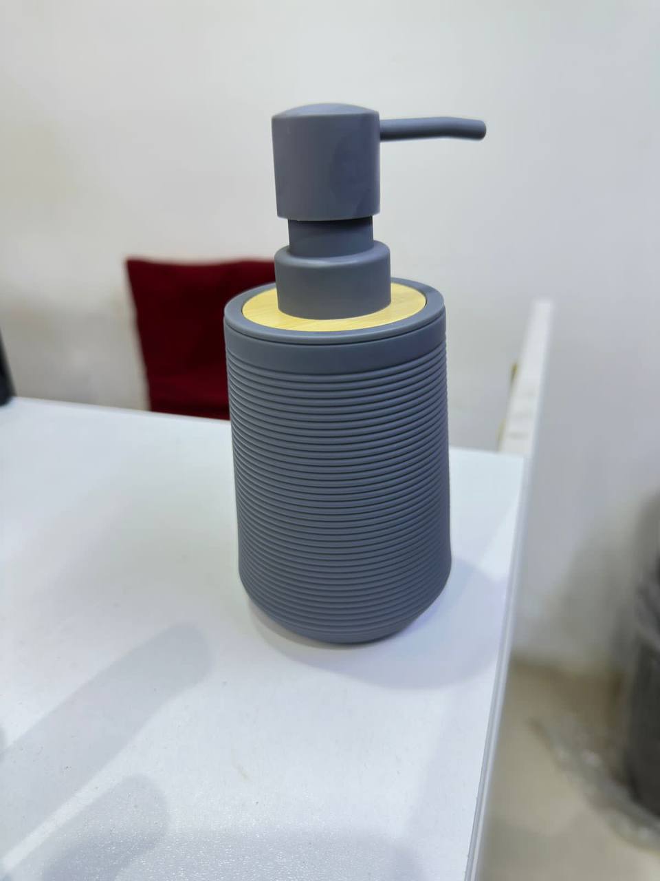 Elevate your space with this modern matte round hand soap dispenser, featuring a stylish bamboo trim. Available in black, white, nude, and grey, its 260ml capacity offers the perfect blend of elegance and functionality for your bathroom or kitchen sink.
