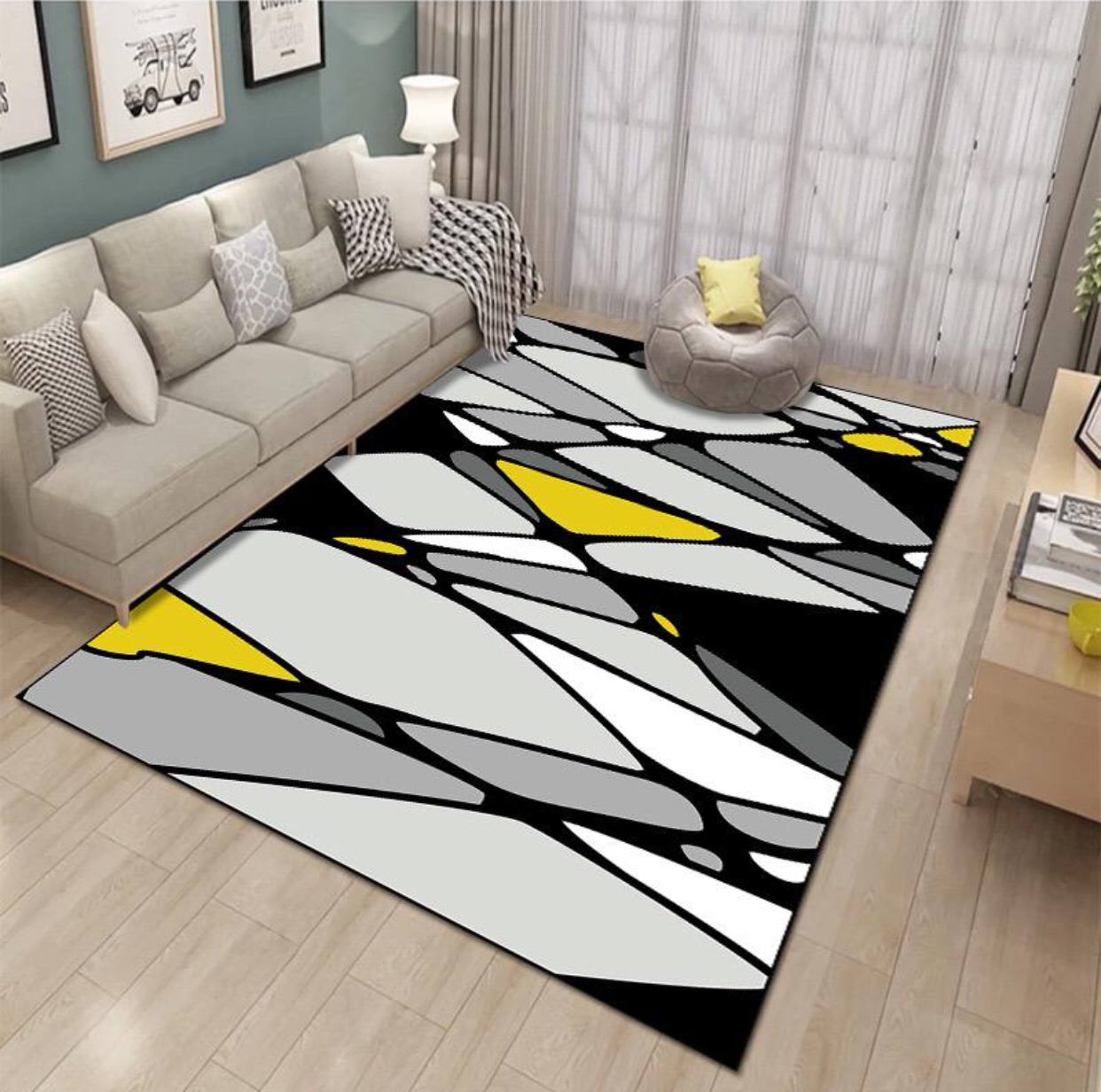 Elevate your space with this modern minimalist living room carpet. Featuring a unique geometric design and eye-catching colors, it adds style and comfort. Soft, non-slip, and wear-resistant—perfect for living room, bedroom, or study. Size: 7×10.