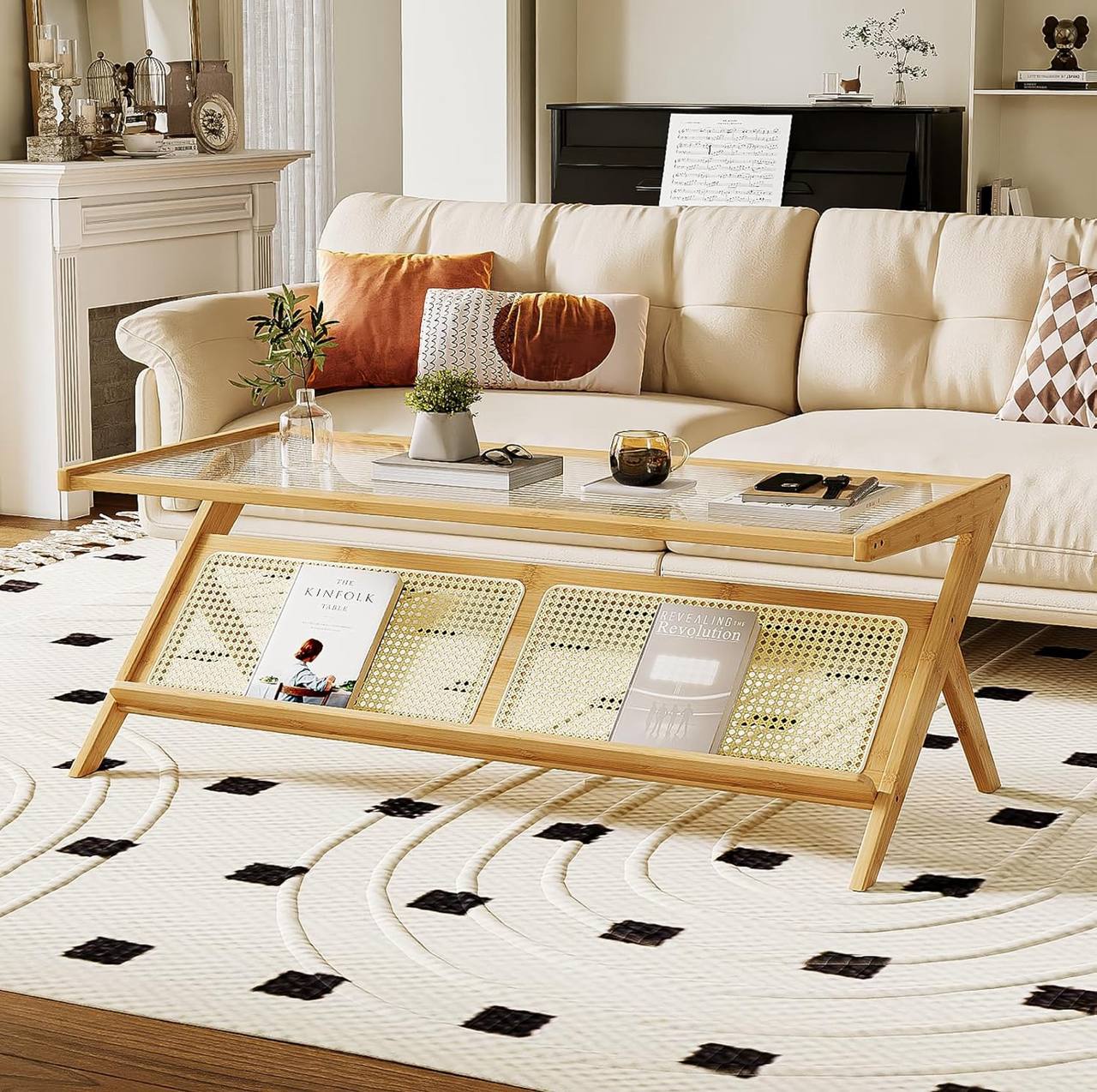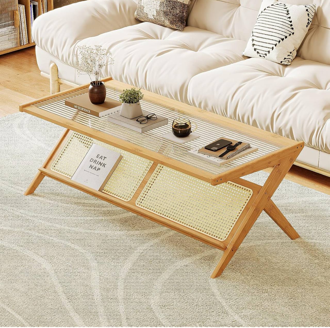 Add charm to your space with our Modern Rattan Coffee Table! Features a built-in storage shelf for books or decor. Available in Black, Light Brown, and Dark Brown—stylish, sturdy, and perfect for modern interiors.