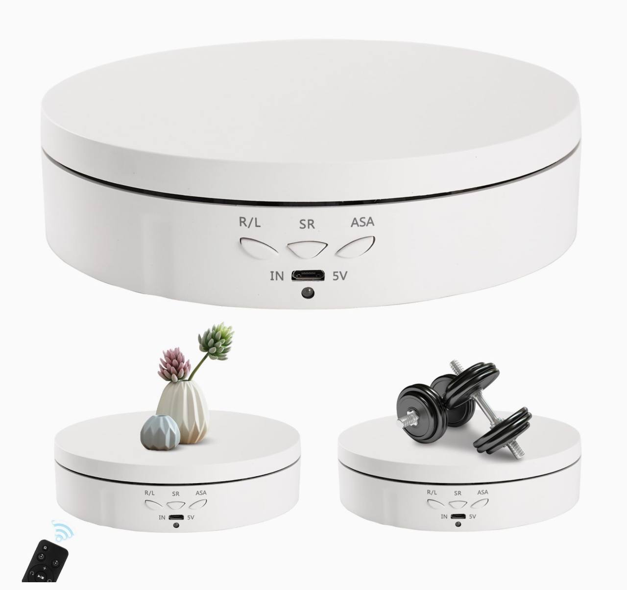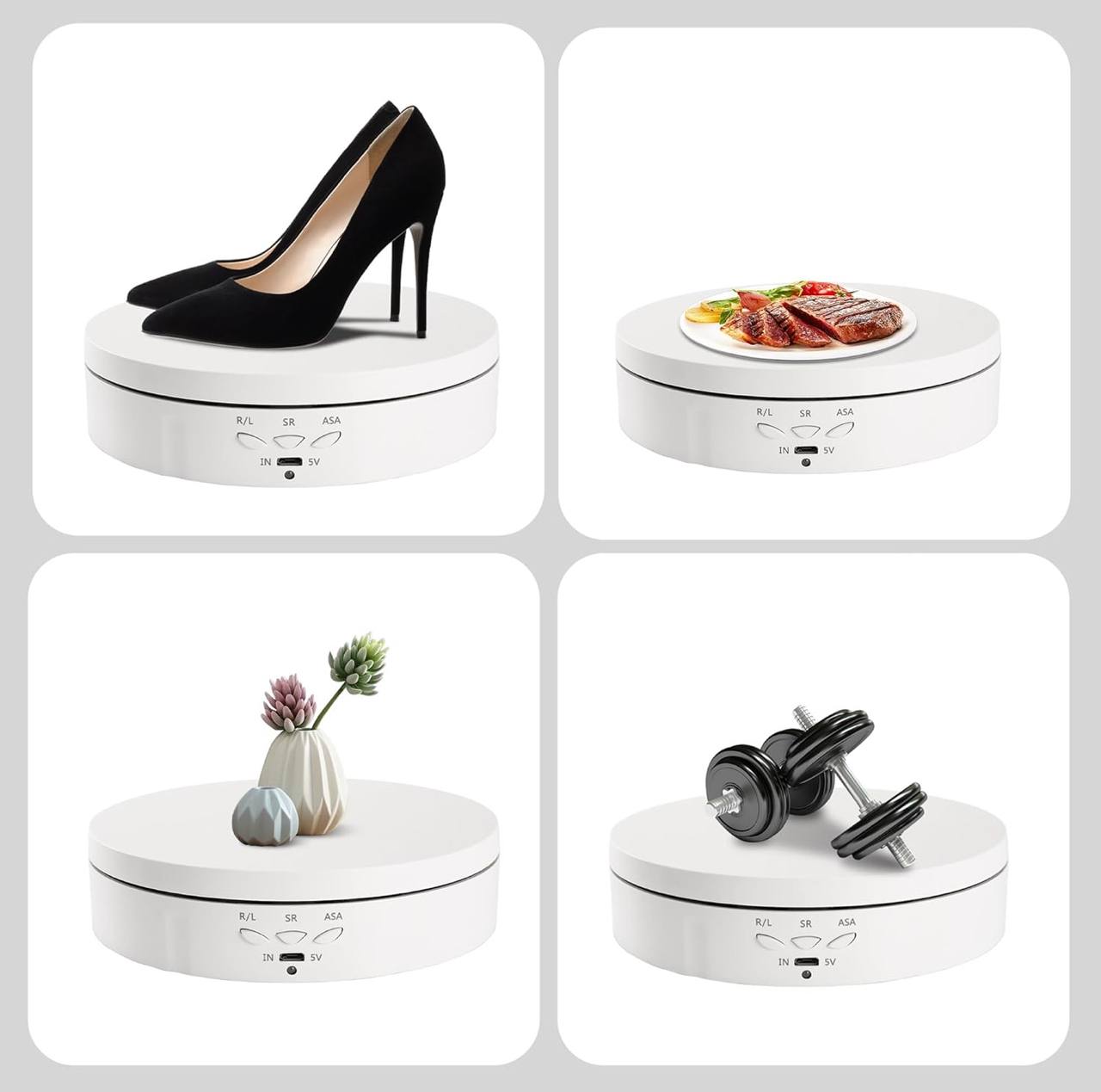 Showcase your items with our Motorized Photography Rotating Display Turntable. Adjustable speed and direction (8, 15, 30 seconds per circle), with forward/reverse functions for versatile viewing angles. 15cm in size, it’s powered by USB or battery for convenience and flexibility.