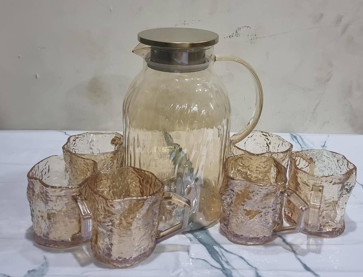 Mu Yan Golden 7pc glass water set - 200mlx6 tumblers +2000ml jug